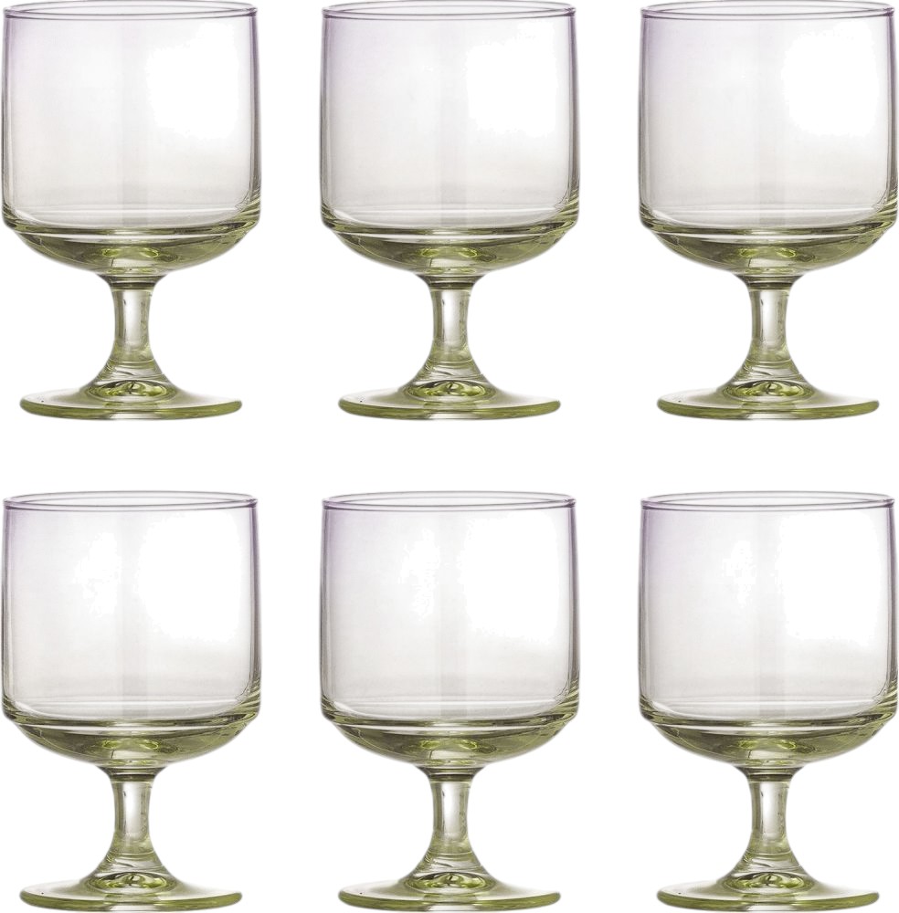 - Sæt med seks drikkeglas i lilla med lysegrøn stilk