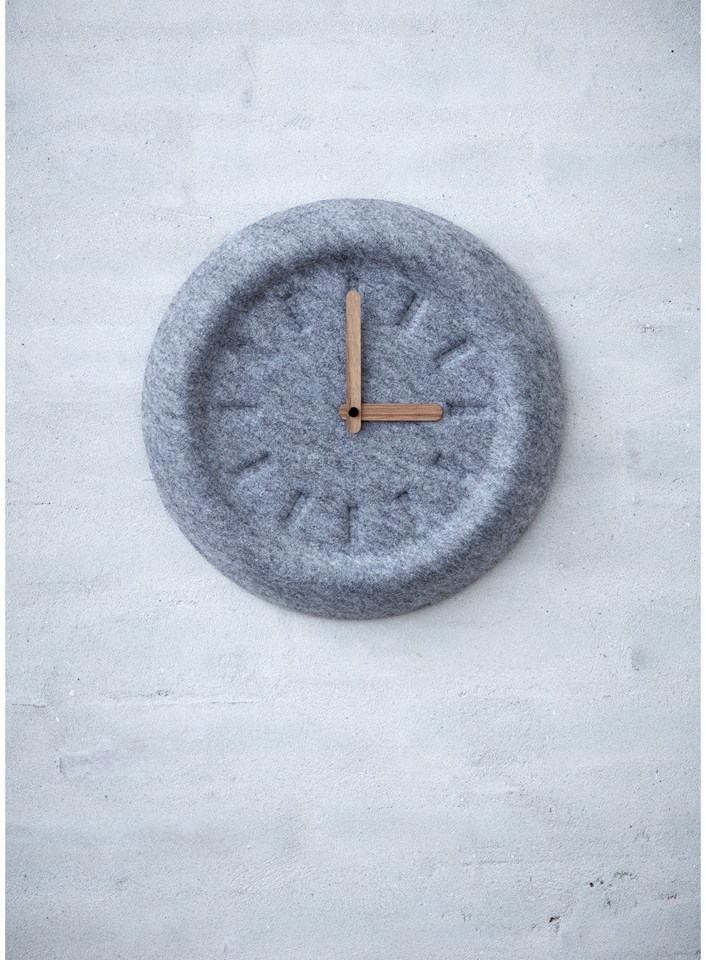 Nuance Vægur er designet til at indtage en markant plads på væggen i den moderne, nordiske bolig. Igennem det modige materialevalg understreges det Skandinaviske design. Den kraftige filt fremhæver urets former, og i kombination med viserne i amerikansk, olieret egetræ opstår et trendy og eksklusivt udtryk.