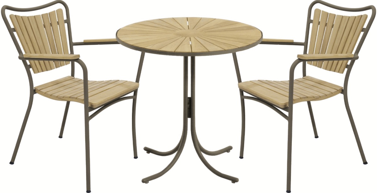 - Havemøbelsæt med cafébord Ø70 cm og 2 Marguerit havestole