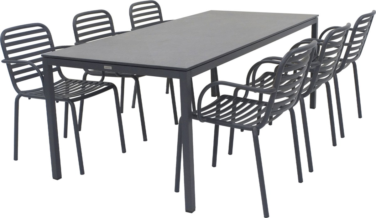 - Komplet havemøbelsæt med bord og seks stole i matchende antracit