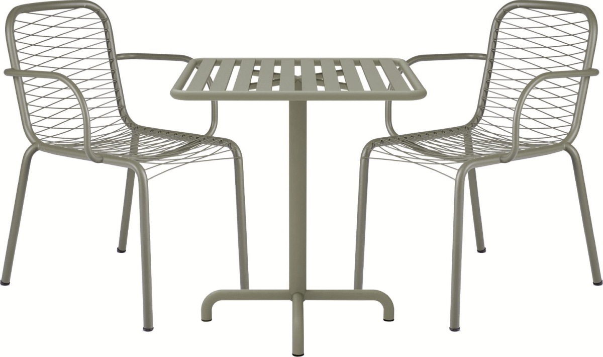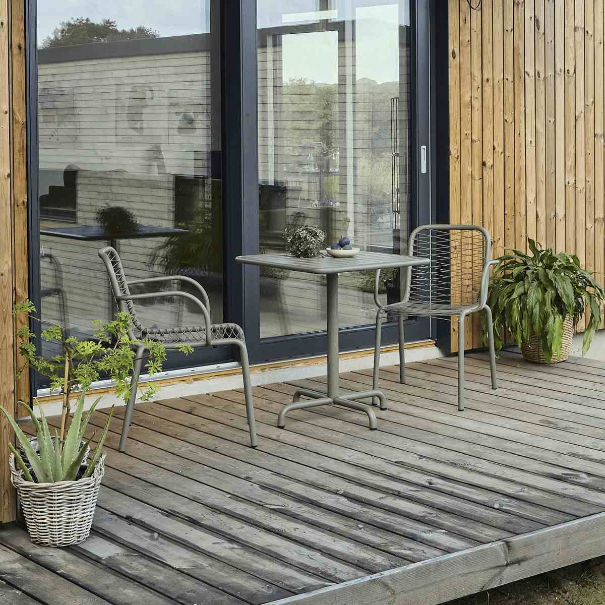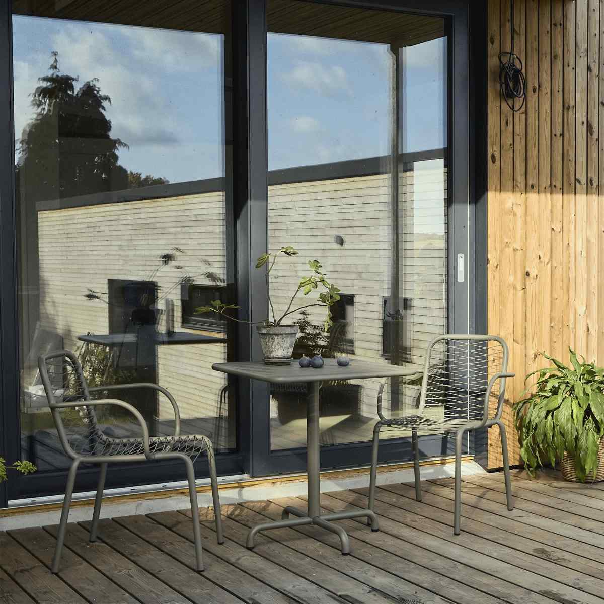 Mandalay Ivy cafésættet med to Ivy Wire stole er skabt til det danske klima og de kompakte uderum, som mange kender fra altaner og små haver. Dette praktiske sæt kombinerer funktionel design med holdbare materialer, der kan modstå regn, blæst og skiftende temperaturer året rundt. Designet af Mathias Falkenstrøm, kendt fra "Danmarks Næste Klassiker", repræsenterer Ivy-kollektionen en moderne tilgang til udendørsmøbler, hvor tiny living og altanliv står i centrum.Det firkantede cafébord måler 66 x 66 cm og har en bordplade i robust materiale, der er udviklet til at kunne stå ude hele året. For mange danskere er det en udfordring at finde opbevaringsplads til havemøbler i vintermånederne, og derfor er Ivy cafébordet designet til at kunne blive stående uden behov for beskyttelse i kælderrum eller under halvtag. Bordets kompakte størrelse gør det ideelt til mindre altaner og balkoner, hvor pladsen er begrænset, men hvor ønsket om et hyggeligt udeareal stadig er stort.
