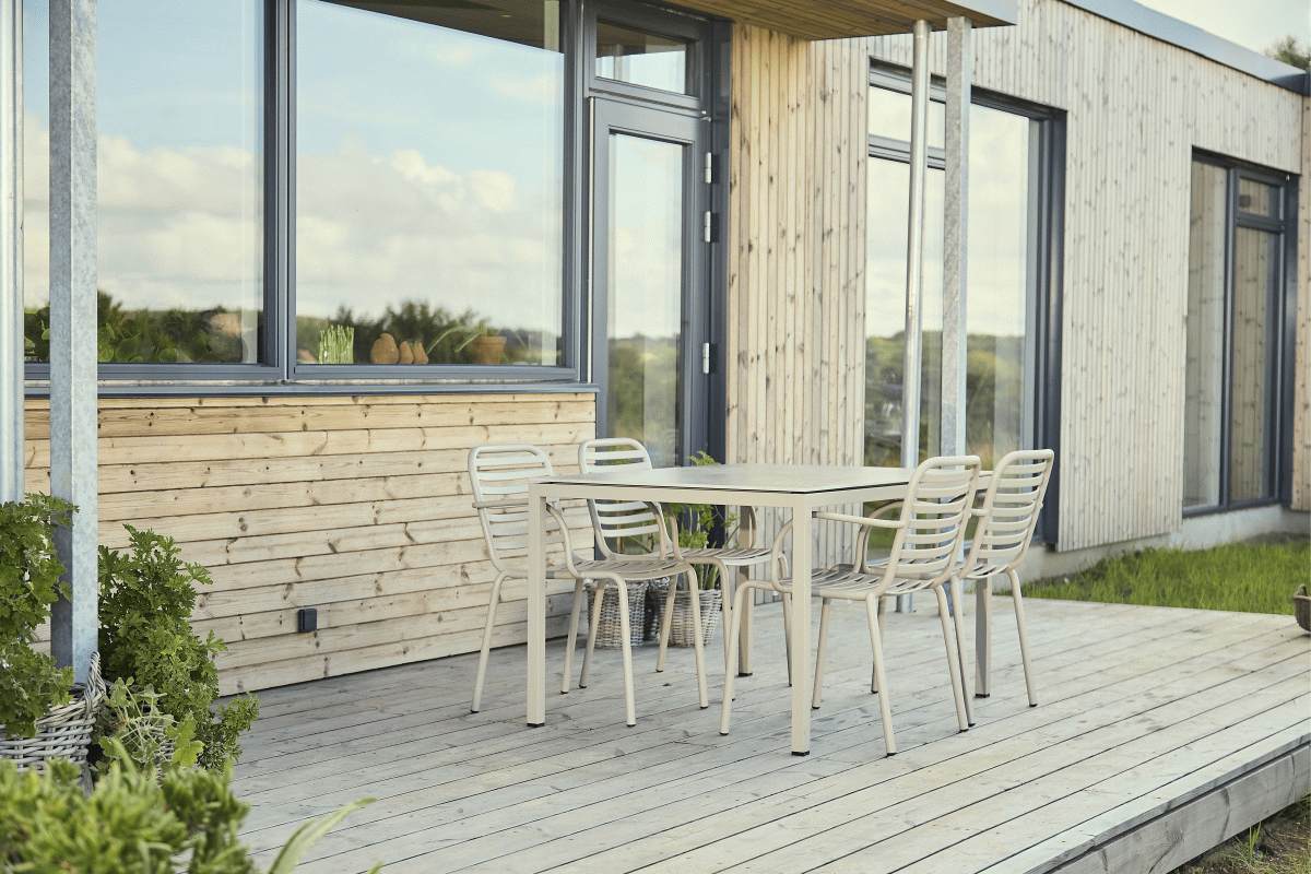 Med sine mål på 132 cm i længden og 90 cm i bredden passer bordet perfekt til både mindre og mellemstore terrasser. Skal der være plads til flere gæster, kan flere Terra-borde stilles i forlængelse af hinanden, da de alle har samme bredde.