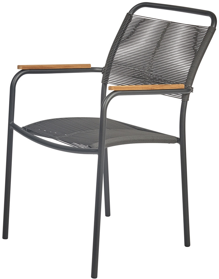 Verona havestolen fra Mandalay genfortolker 70'ernes ikoniske snoredesign med nutidige materialer og funktionalitet. Stolen præsenterer en elegant antracit finish kombineret med armlæn i teak, der skaber en harmonisk kontrast mellem det moderne aluminiumsstel og den naturlige træoverflade. Det karakteristiske SunLoom flet giver stolen et raffineret udtryk, samtidig med at det leverer en behagelig siddekomfort, der indbyder til lange stunder i haven.Det pulverlakerede aluminiumsstel sikrer, at stolen forbliver let at håndtere uden at gå på kompromis med robustheden. Materialevalget gør stolen modstandsdygtig over for rust og korrosion, hvilket er essentielt for møbler, der udsættes for danske vejrforhold. SunLoom flettet adskiller sig markant fra traditionelt snorflet ved at bevare sin form og spændstighed gennem sæsonerne. Hvor konventionelt snorflet kan blive slapt over tid, holder SunLoom materialet sin struktur og æstetik intakt, selv efter længere perioder udendørs.