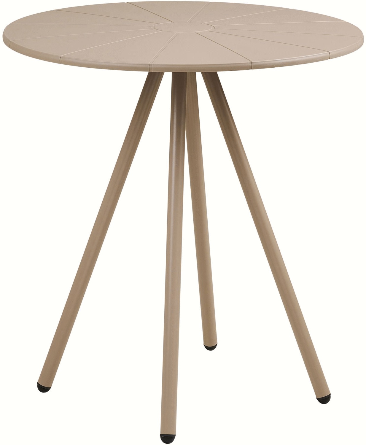 House Nordic Barletta Cafébord i taupe bringer en moderne og funktionel løsning til hjemmets spisestue, køkken eller altan. Med sin runde bordplade på 70 cm i diameter er dette cafébord ideelt til mindre rum, hvor det skaber et indbydende mødested for morgenmad, frokost eller en kop kaffe. Det kompakte design gør bordet perfekt til lejligheder, altaner eller som et charmerende supplement i hjørnet af stuen.Bordpladen er fremstillet i PP, et robust og slidstærkt materiale, der sikrer lang levetid og nem vedligeholdelse. Den taupe-farvede overflade giver bordet en varm og neutral æstetik, der passer elegant ind i både moderne og klassiske indretningsstile. PP-materialet er let at rengøre med en fugtig klud, hvilket gør bordet praktisk til daglig brug, hvor der hurtigt kan opstå pletter og snavs.