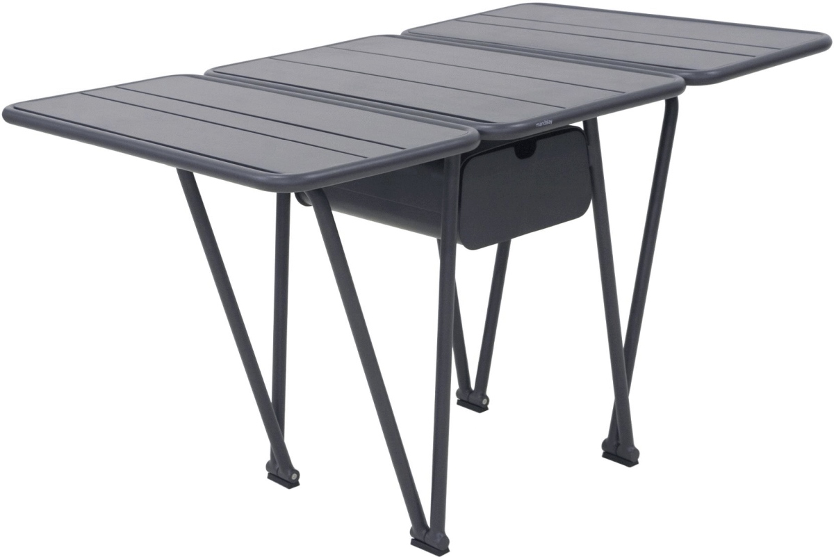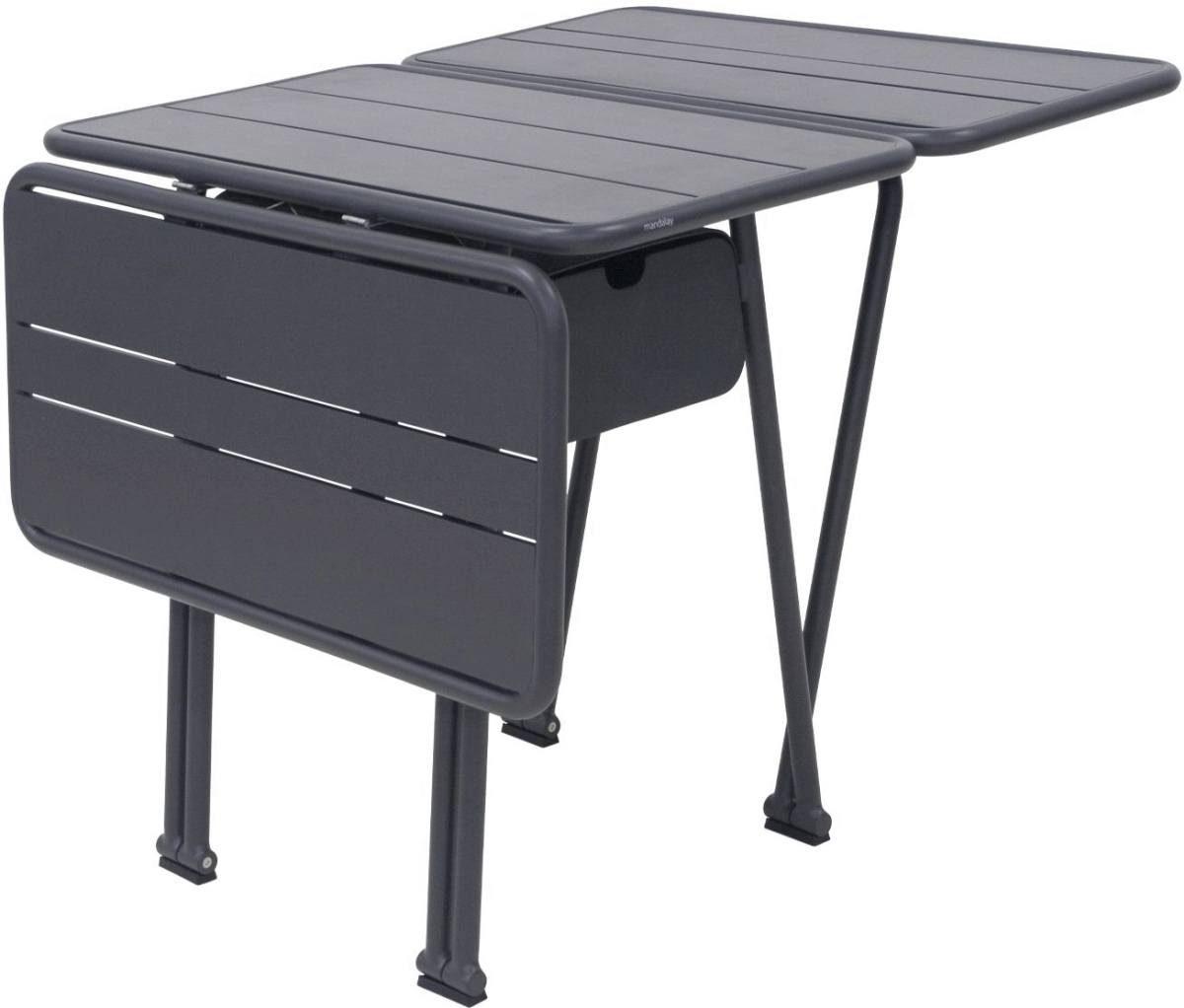 Ivy Klapbord fra Mandalay er designet med fokus på funktionalitet og æstetik til mindre udendørsområder. Dette elegante bord kombinerer skandinavisk designtradition med praktiske løsninger, der gør det ideelt til altaner og terrasser, hvor pladsen er begrænset.Bordet er fremstillet i pulverlakeret aluminium i en moderne antracitfarve, der passer naturligt ind i forskellige udemiljøer. Materialet sikrer, at bordet er let at håndtere samtidig med, at det er robust nok til udendørs brug året rundt. Den pulverlakerede overflade giver bordet en holdbar finish, der bevarer sit flotte udseende over tid.