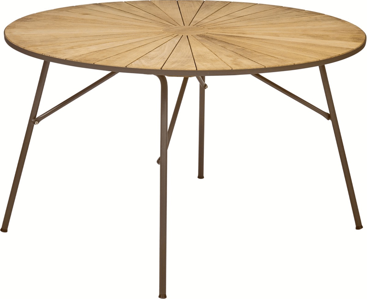 - Rund bordplade i massiv indonesisk plantageteak med diameter på 120 cm