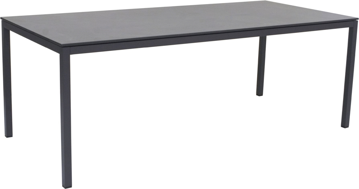 Mandalay Pure havebord i antracit kombinerer robust konstruktion med et stramt, minimalistisk udtryk. Med sine 197 cm i længden og 90,3 cm i bredden skaber bordet plads til 6-8 personer, hvilket gør det ideelt til både hverdagsmåltider og festlige sammenkomster på terrassen eller i haven.Bordpladen er fremstillet i kompaktlaminat med en elegant skifer-look overflade, der giver bordet et raffineret og afdæmpet udtryk. Materialet er slidstærkt, formstabilt og ridsefrit, hvilket sikrer, at bordet bevarer sit flotte udseende år efter år. Kompaktlaminat påvirkes ikke af temperatursvingninger, hvilket gør det særligt velegnet til danske vejrforhold med skiftende årstider.