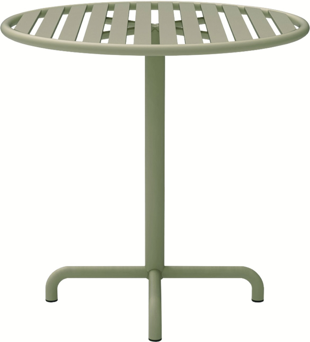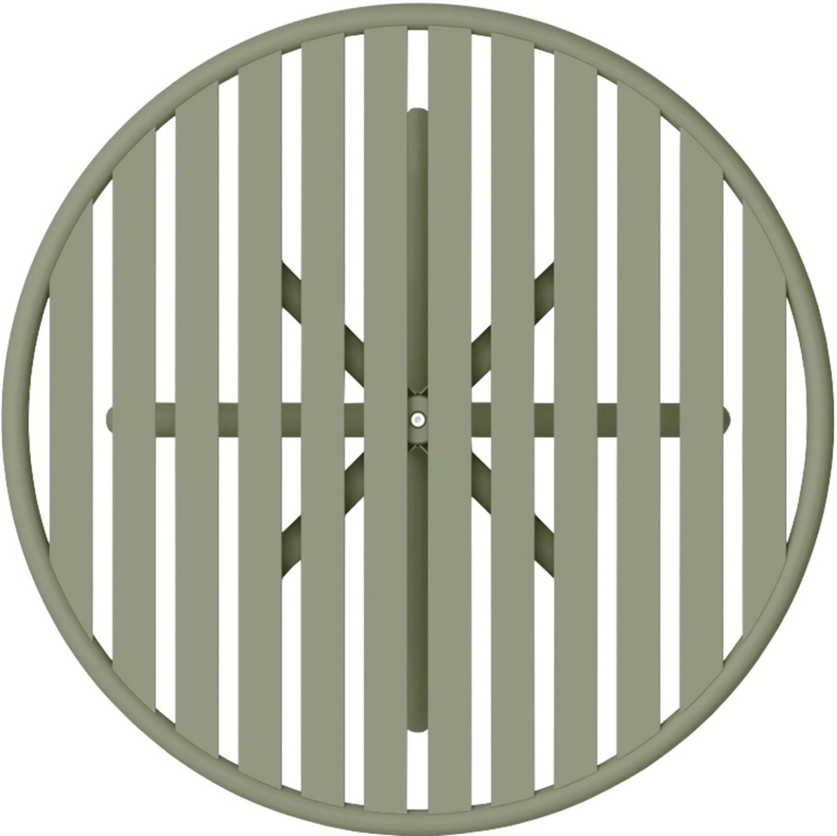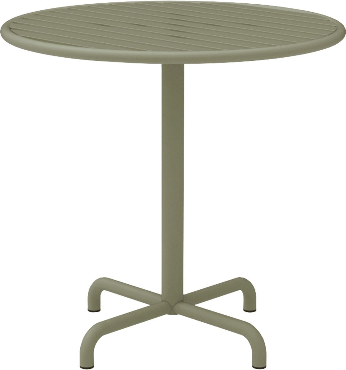 Bordet er fremstillet i pulverlakeret aluminium, hvilket giver en robust og praktisk overflade, der kan stå ude hele året uden at kræve særlig vedligeholdelse. Den olivengrønne farve tilføjer en moderne og stilren nuance til udendørsområdet og skaber en behagelig atmosfære, hvor du kan nyde morgenkaffens stille stunder eller en afslappende eftermiddag i solen.