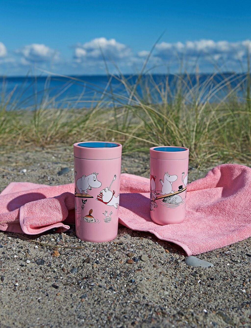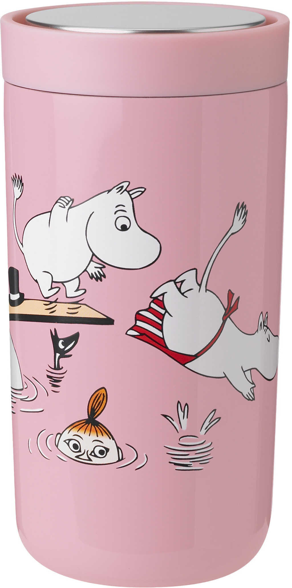 Den genanvendelige To Go Click rejsekop med ’Moomin swim’ motiv er perfekt til både store og små Mumifans, der vil nyde en varm drik på farten. To Go Click er smart design og funktionalitet i ét krus. Koppen kan betjenes med én hånd - et let tryk på toppen og koppen er drikkeklar, og det er muligt at drikke fra den hele vejen rundt. Tryk igen og To Go Click er lukket. Skån miljøet og undgå engangskopper ved at medbringe din egen To Go Click kop. Motivet på ’Moomin swim’ stammer fra en serie af daglige tegnestriber, der blev trykt første gang i 1950’erne i den engelske avis ”Evening News”. De daglige tegnestriber blev efterfølgende trykt i 40 lande og nåede over 20 millioner læsere.Højde: 14 cm