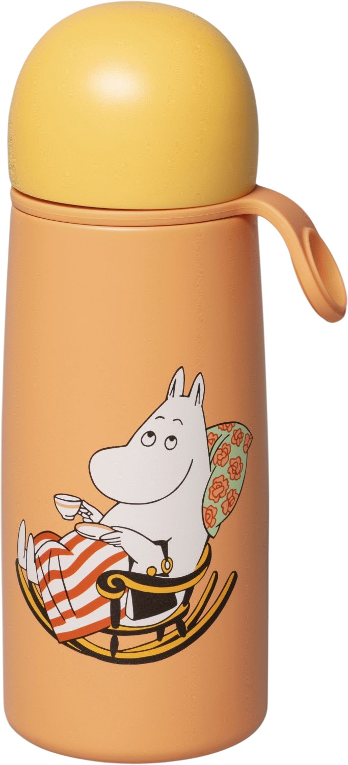 Moomin Arabia Muni-termoflasken kombinerer praktisk funktion med kunstnerisk æstetik og gør hver dagligdags situation lidt mere magisk.