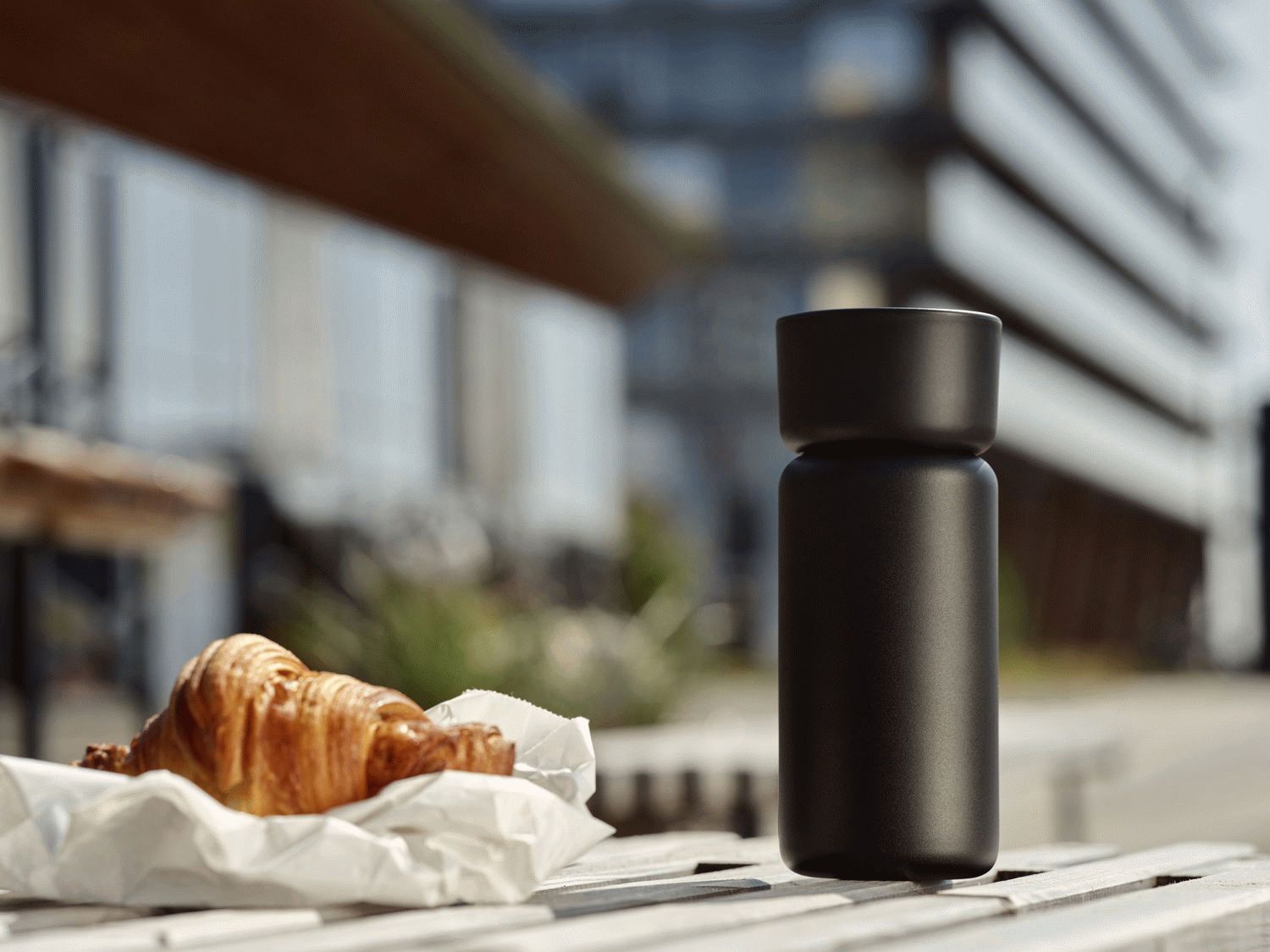 Når kaffen skal nydes, åbnes det lydløse kliklåg let med én hånd. Koppen har 360° drikkeåbning og en blød kant, der minder om din yndlingskop. Flaskens brede åbning gør det nemt at tilsætte både isterninger, teposer og sikrer problemfri påfyldning og rengøring.