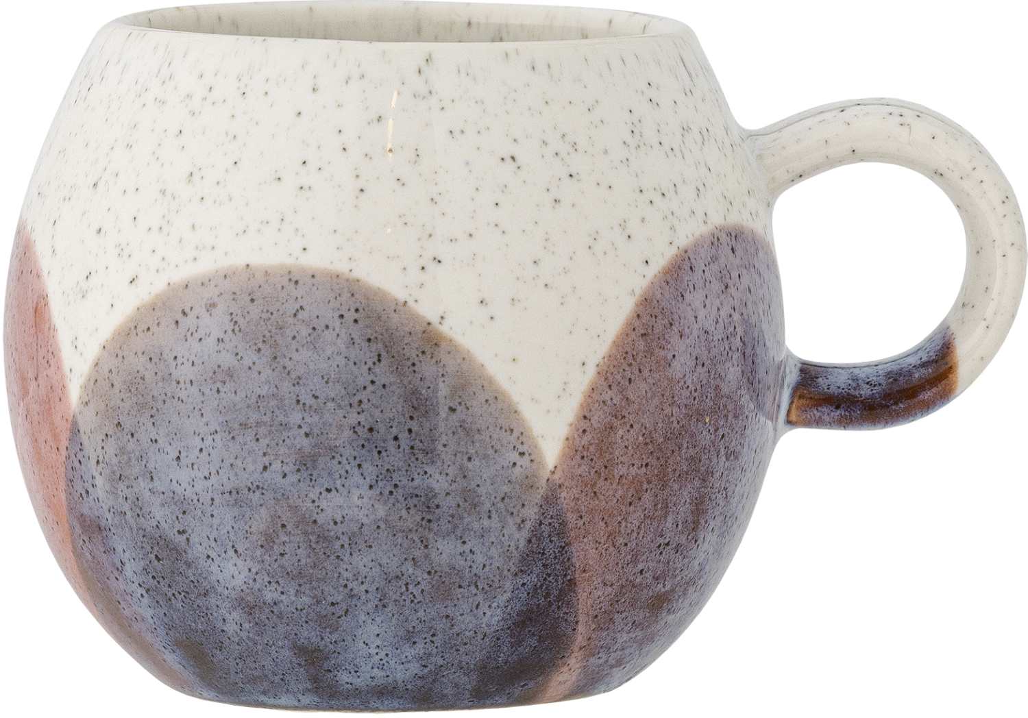 Paula Koppen fra Bloomingville bringer personlighed og håndværksmæssig charme til dit daglige kaffebord. Denne smukke stentøjskop er designet med omhu og opmærksomhed på detaljer, der gør hver enkelt kop til et unikt stykke keramik.Koppen er dekoreret med håndmalede cirkler i en harmonisk blanding af brune, blå og rødlige nuancer. De overlappende mønstre skaber en dynamisk og levende overflade, der fanger blikket og tilføjer en kunstnerisk dimension til din kaffeoplevelse. Den varme farvepalet gør koppen nem at kombinere med både klassisk og moderne bordopdækning.