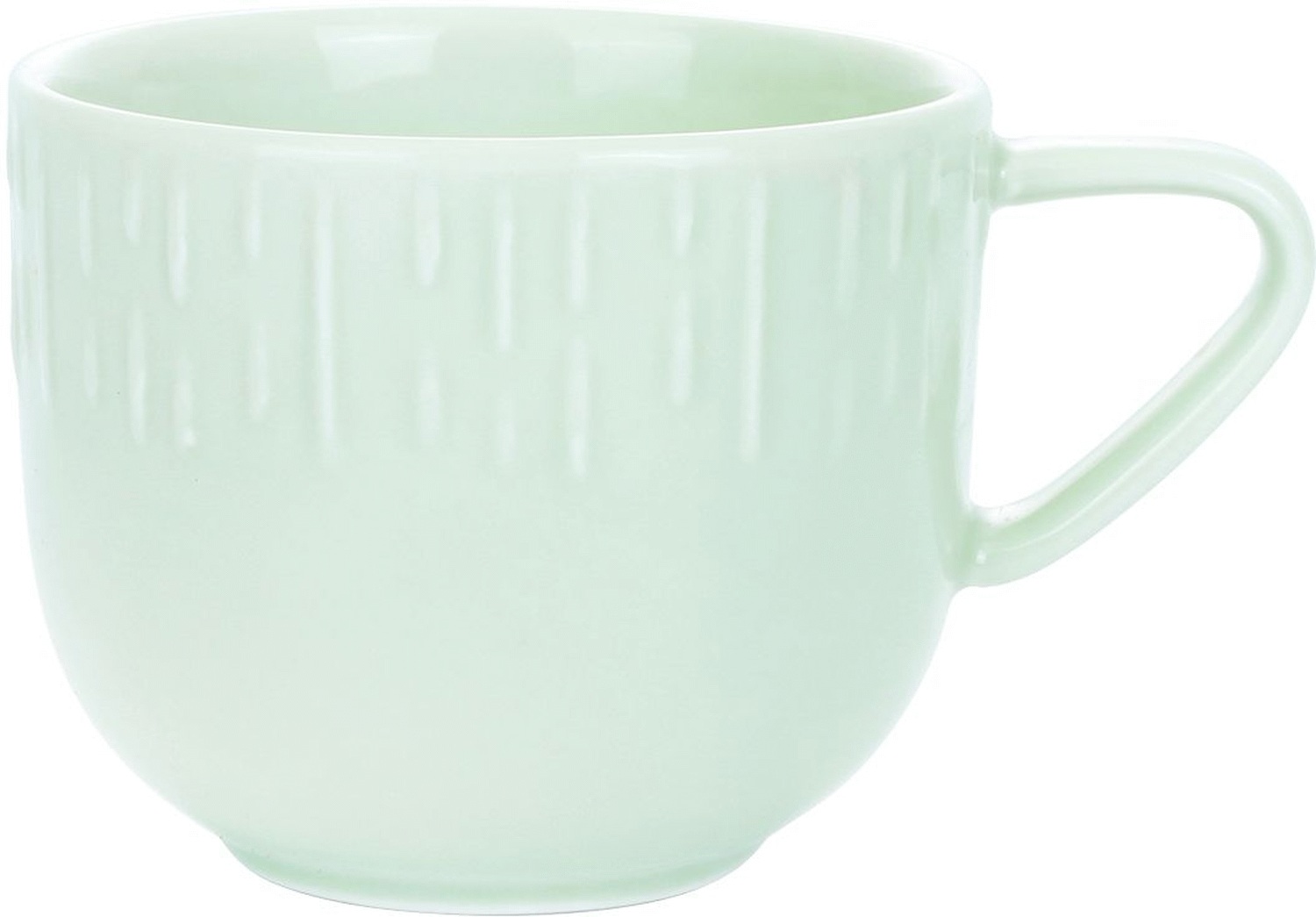 Fremstillet i dobbeltbrændt hvidt porcelæn sikrer koppen både holdbarhed og en fin finish. Porcelænet er robust og kan tåle daglig brug, hvilket gør den til et praktisk valg i et travlt hjem. Den lyse grønne farve bevarer sin friskhed selv efter mange vaske, og overfladen er glat og behagelig at drikke af.