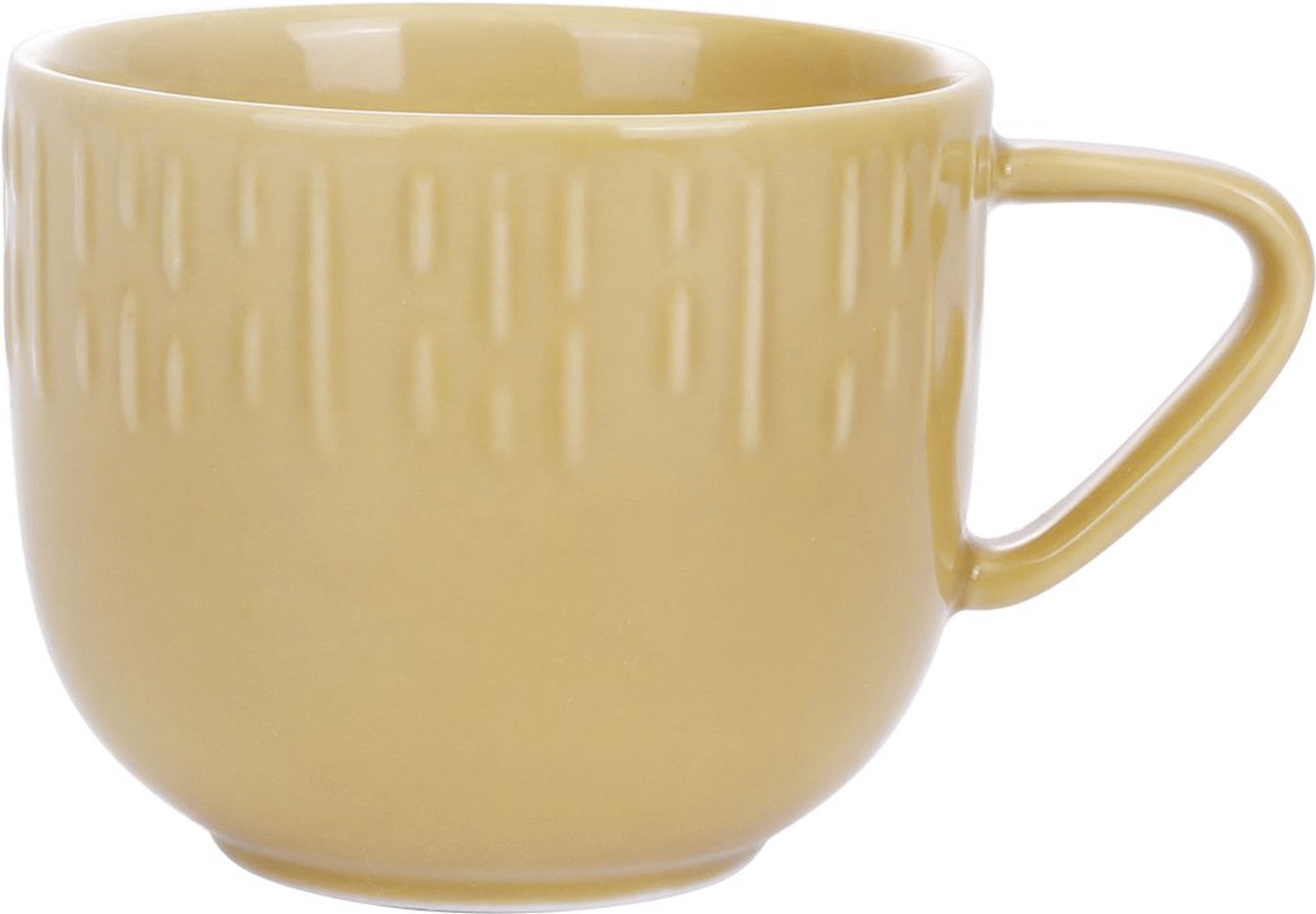 Denne elegante kop fra Confetti serien i den varme mustard-farve tilfører personlighed og stil til bordet. Med sit tidløse design og funktionelle formgivning er koppen ideel til den daglige kaffepause, men fungerer lige så godt til te, kakao eller andre varme drikke. Det rene porcelæn og den karakteristiske farve gør hver servering til en lille oplevelse.Koppen er fremstillet i dobbeltbrændt hvidt porcelæn af høj kvalitet, hvilket sikrer både holdbarhed og et smukt udtryk. Det robuste materiale tåler daglig brug og kan uden problemer håndtere både høje og lave temperaturer. Med en kapacitet på 20 cl er koppen perfekt dimensioneret til en standard kop kaffe eller te.