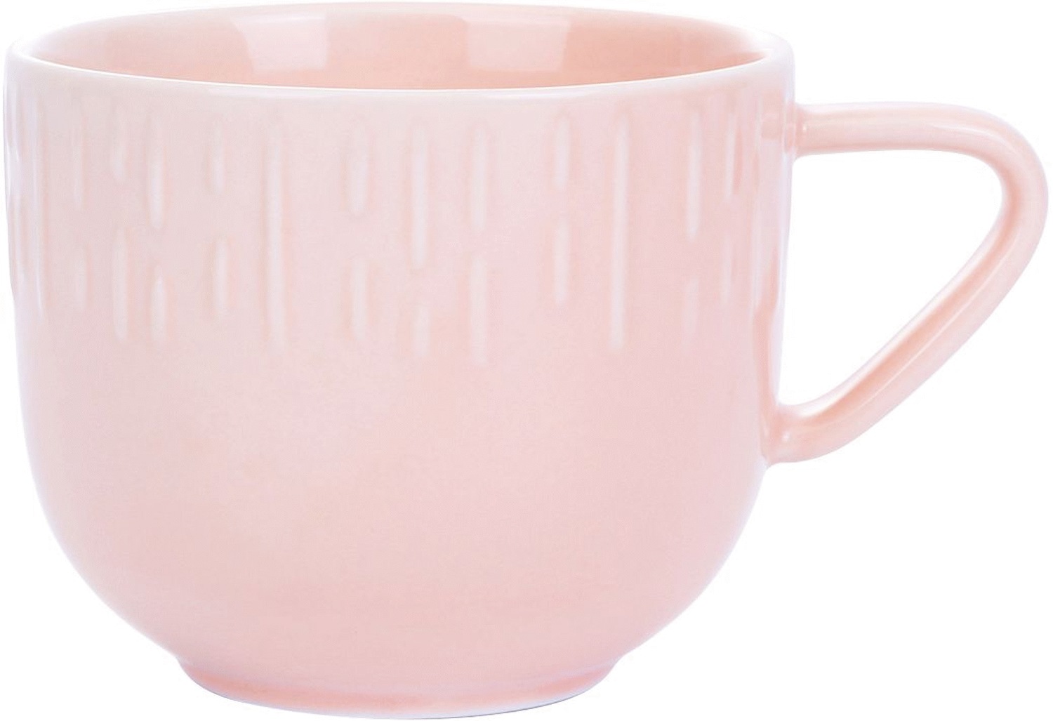 Koppen er fremstillet i dobbeltbrændt hvidt porcelæn, hvor den lyserøde farve skaber en indbydende og moderne atmosfære. Det robuste porcelæn sikrer lang holdbarhed og tåler daglig brug, samtidig med at det elegante udtryk bevares. Designet kombinerer funktionalitet med æstetisk appel, hvilket gør koppen til et naturligt valg både til hverdagsbrug og festlige lejligheder.