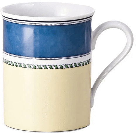 Kruset er fremstillet i fineste porcelæn og præsenterer det karakteristiske Medley Mantova-dekor i en smuk blå nuance. Det håndgribelige håndværk og den omhyggelige finish gør hvert krus til et lille kunstværk, der kombinerer æstetik med praktisk anvendelighed. Den cylindriske form sikrer en behagelig håndtering, mens det solide håndtag giver et sikkert greb.