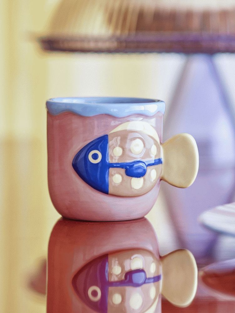 Stentøj er et robust og holdbart materiale, der er velegnet til daglig brug. Det tåler både varme og kulde, hvilket gør kopperne praktiske til forskellige drikkevarer – fra den varme morgenkaffe til en forfriskende kold drik. Den præget dekoration med fiskemotiv tilføjer en legende og dekorativ dimension, der appellerer til dem, der sætter pris på detaljer og personlighed i deres køkkenudstyr.