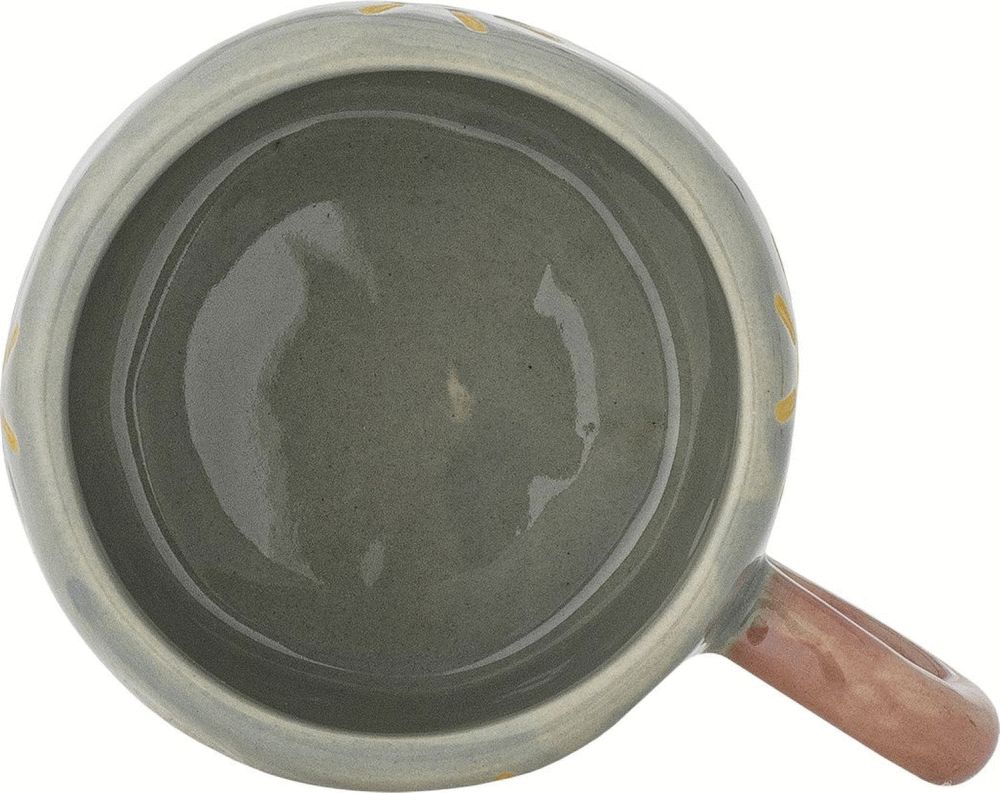 Koppen er fremstillet i robust stentøj, et materiale der er kendt for sin holdbarhed og evne til at bevare varmen i drikkevarerne. Den håndmalede finish giver hvert enkelt eksemplar sit eget unikke udtryk, så ingen to kopper er helt ens. Netop denne håndværksmæssige tilgang sikrer, at du får et produkt med personlighed og autenticitet. Små variationer i mønster og farveintensitet er derfor en naturlig del af koppens charme og vidner om den omhyggelige fremstillingsproces.