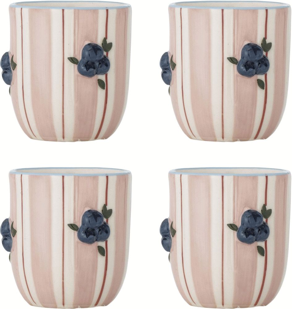 Dette sæt består af fire skønne kopper fra Bloomingville, designet til at tilføje et personligt og kunstnerisk præg til din daglige kaffestund eller teceremoni. Hver kop er fremstillet i stentøj og bærer en præget overflade, der giver en taktil og visuel dybde. De håndmalede detaljer sikrer, at hver enkelt kop har sin egen karakter og charme.