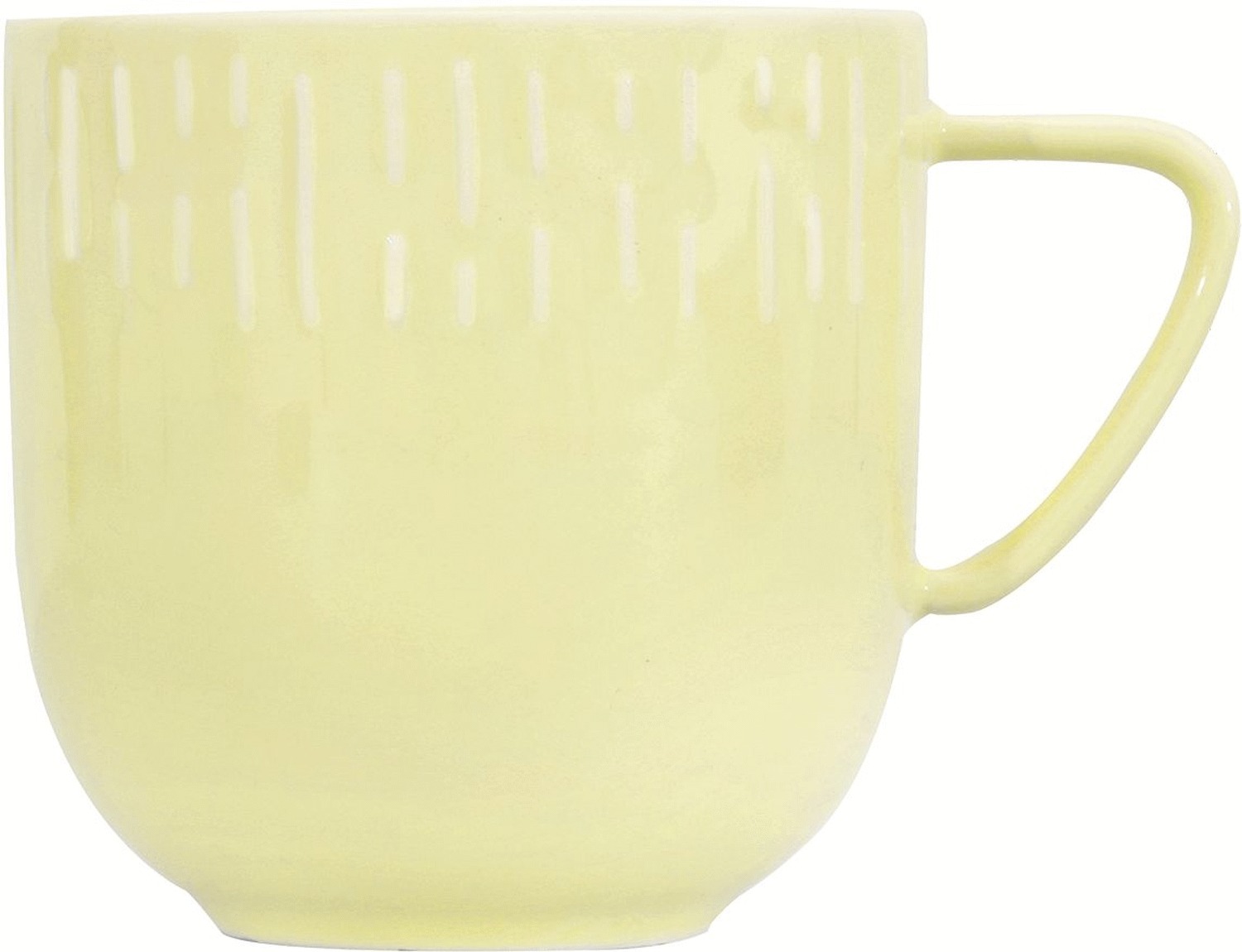 Med en kapacitet på 35 cl er koppen ideel til generøse portioner af dine yndlingsdrikke. Den ergonomiske form og det solide håndtag sikrer komfortabel håndtering, mens det dekorative relief giver koppen et unikt og personligt præg. Den gule farve harmonerer smukt med andre farver fra Confetti serien, så du kan mixe og matche efter dit humør og stil.