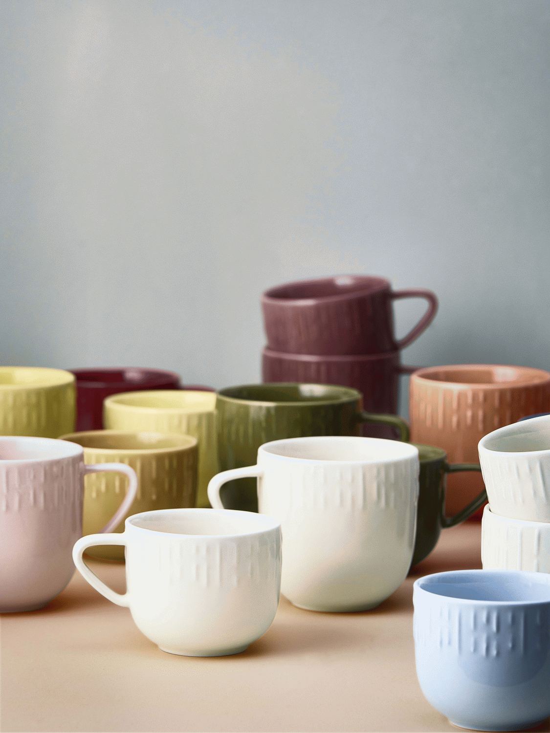 - Dekorativt relief langs kanten giver hvert krus et unikt udtryk