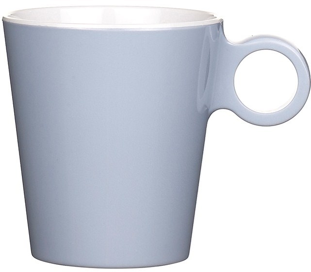 Rosti Mepal Flow Krus 160 ml Retro blåDette produkt tilhører Rostis Flow service serie i melamin. Kombinationen af det nutidige, stilfulde design og de fantastiske, praktiske anvendelsesmuligheder gør denne serie unik. Serien er lavet af robust letvægtsmelamin og kan stables. Dette gør det nemmere at opbevare servicet i små skabe eller skuffer på båden eller i campingvognen.