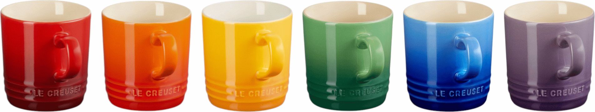 - Sæt med 6 krus à 20 cl i regnbuens farver