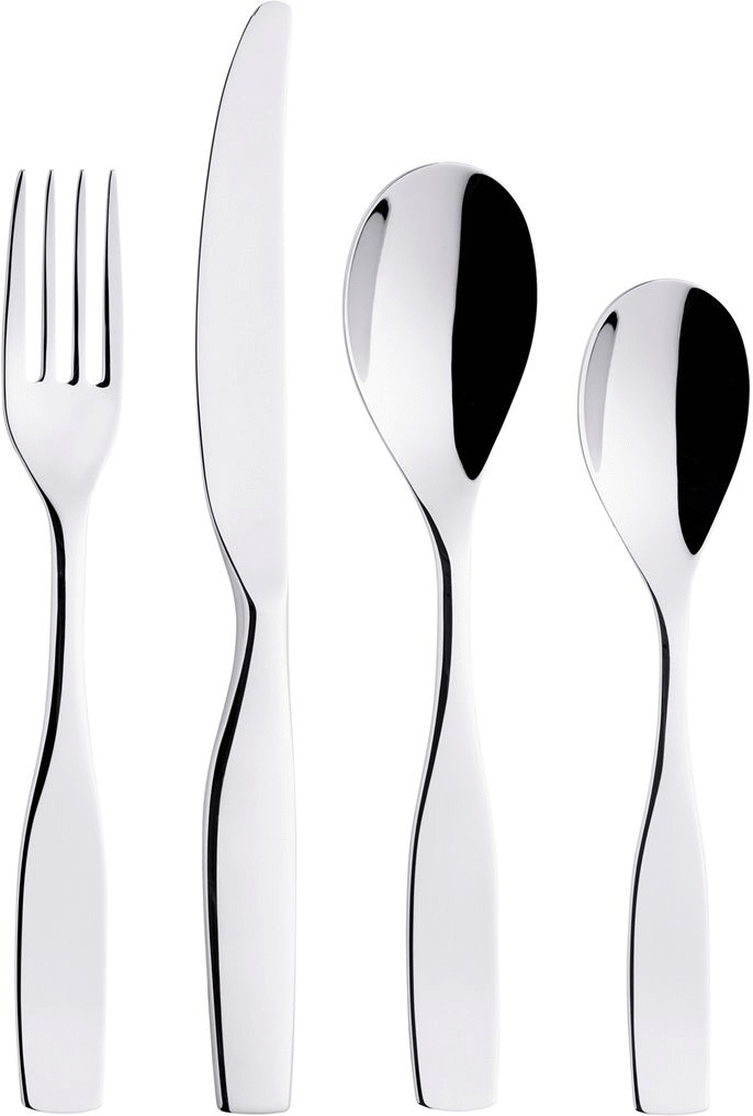 Dette 16 dele sæt er sammensat til at dække behovene for fire personer og indeholder alt det nødvendige hovedbestik samt kaffeskefulde. Hver del ligger behageligt i hånden, hvilket gør måltidet til en fornøjelse. Den gennemtænkte formgivning sikrer optimal balance og vægt, så bestiket føles naturligt under brug.