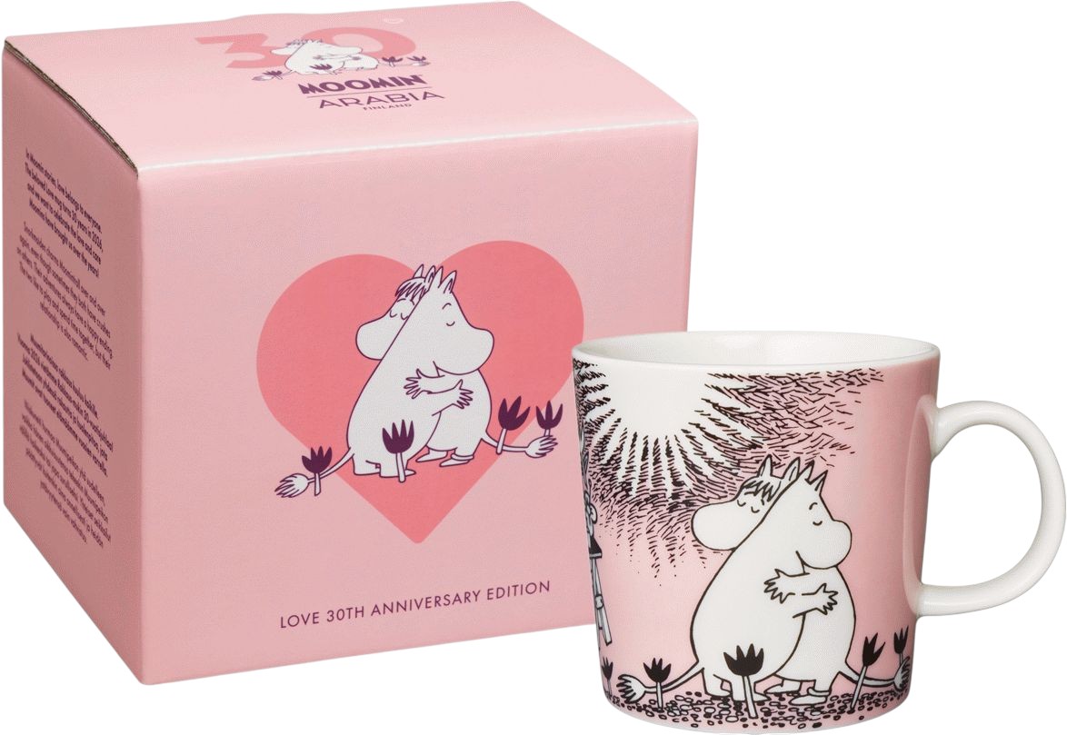 Moomin Arabia fejrer i 2026 tre årtier med det ikoniske Kærlighed-krus, der har indtaget hjerterne hos Mumifans verden over. Dette specialdesignede jubilæumskrus hylder den varme og nære relation mellem Mumitrolden og Snorkfrøken, og bringer en af de mest elskede historier fra Mumidalens univers direkte ind i dit hjem.Kruset fortæller den charmerende historie om Mumitroldens nysgerrige natur, der en dag fører ham og Mumimor ud i uventede eventyr. Da Mumitrolden roder med marsboernes defekte maskine, bliver både han og Mumimor formindsket. Heldigvis hjælper marsboerne med at vende effekten, så Mumifamilien kan genforenes. Det rørende højdepunkt kommer, da Snorkfrøken giver Mumitrolden et stort kram, nu hvor han endelig er tilbage til normal størrelse – et øjeblik der perfekt indfanger den ægte kærlighed og omsorg, som kendetegner hele Mumidalens univers.