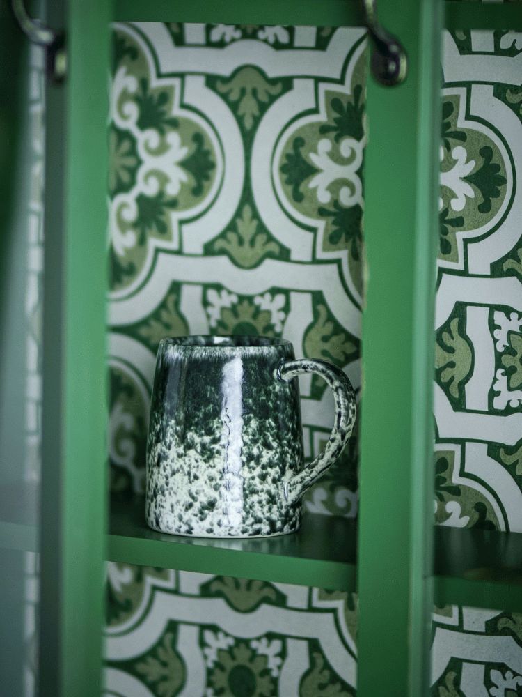 Winnie Krus fra Creative Collection bringer personlighed og autenticitet ind i hverdagen. Dette sæt består af fire krus i stentøj, hvor hver enkelt fremstår med sin egen unikke udtryk takket være den reaktive glasur. Den marmorerede overflade kombinerer dybe grønne nuancer med bløde offwhite toner, der flyder sammen i et organisk og levende mønster.