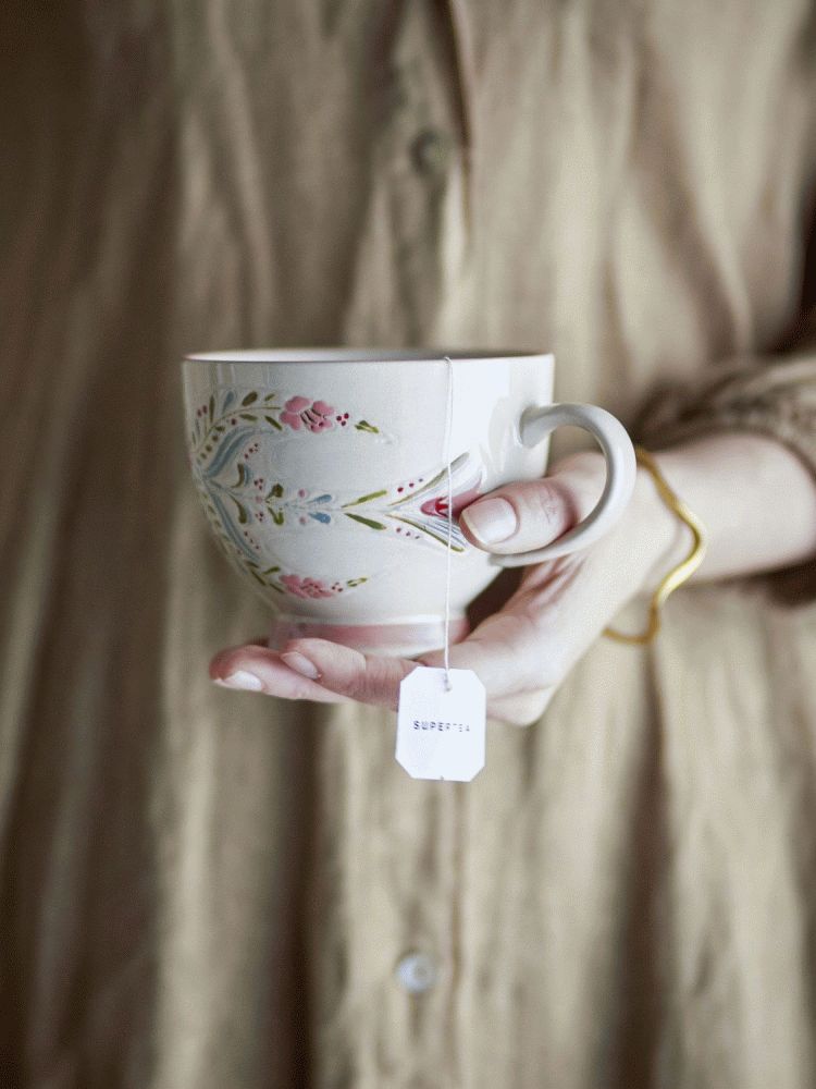 Hvert krus er håndmalet, hvilket betyder, at der kan forekomme små variationer i både mønster og farvestyrke. Disse naturlige forskelle er en del af produktets charme og gør hvert enkelt krus til et unikt stykke. Det er netop denne individuelle karakter, der adskiller håndværk fra masseproduktion og giver dit køkken en personlig atmosfære.