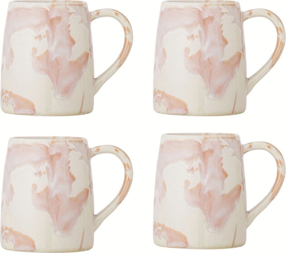 Dette sæt fra Creative Collection består af fire elegante krus i stentøj, der kombinerer funktionalitet med en kunstnerisk æstetik. Winnie Kruset udmærker sig ved sin reaktive glasur, som skaber smukke, maleriske hvirvler i bløde beigetoner med fine lyserøde nuancer. Hver kop får dermed sit eget unikke udtryk, da små variationer i mønster og farvestyrke naturligt opstår under fremstillingen.
