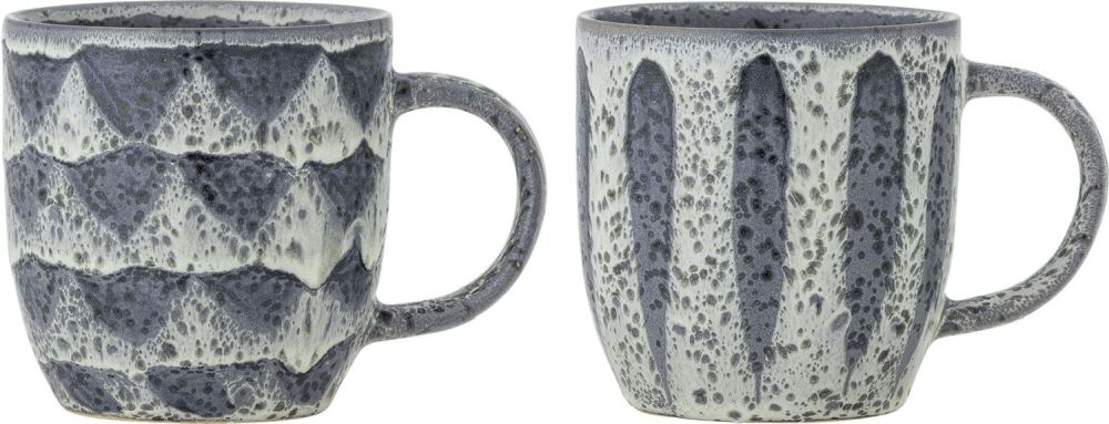 - Sæt af to krus i stentøj med hver sit unikke mønster
