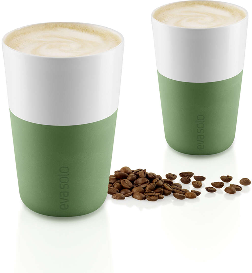 Cafe Latte-kruset fra Eva Solo rummer med sine 360 ml nøjagtig den mængde kaffe, inkl. mælkeskum, der svarer til standardindstillingerne på de mange populære kapsel-kaffemaskiner. Kruset er fremstillet af porcelæn beklædt med silikone, der giver et godt greb.Tåler maskinopvask – silikoneskallen tages af kruset, inden begge dele maskinopvaskes.