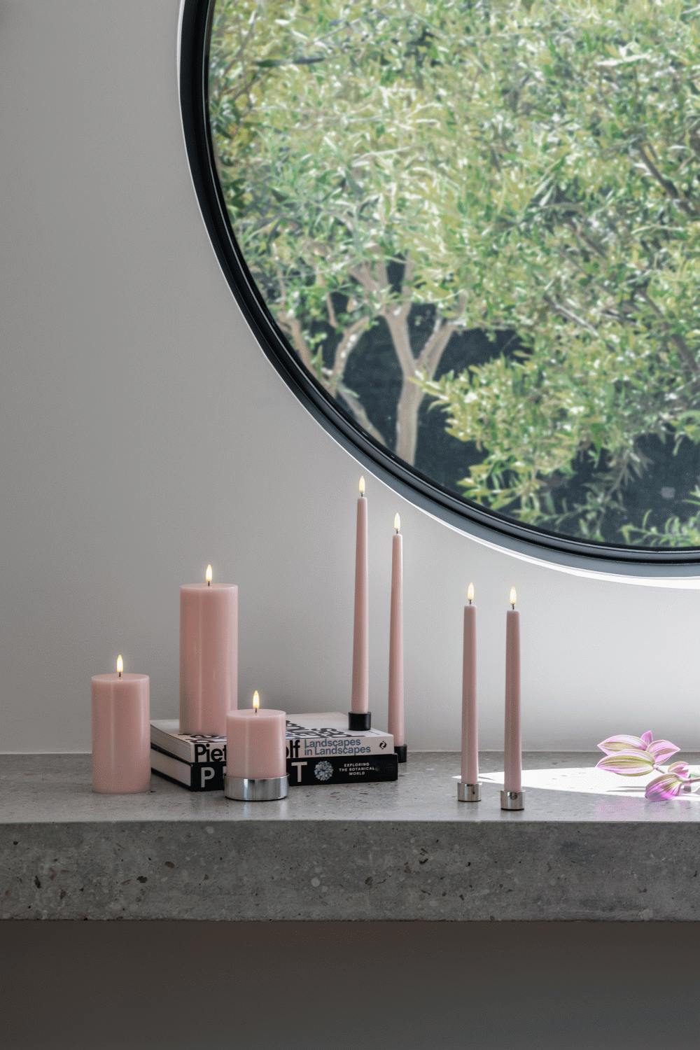 Dette elegante bloklys fra Uyuni Lighting i den smukke farve Rose Powder bringer en sofistikeret atmosfære ind i hjemmet. Med sine klassiske proportioner og glatte finish er lyset skabt til at passe ind i enhver indretningsstil – fra moderne minimalisme til traditionel hygge. De rene linjer og det tidløse design gør bloklyset til et naturligt valg både til daglig brug og festlige anledninger.Lyset er fremstillet i ren paraffin kombineret med ABS-materiale, hvilket sikrer en holdbar konstruktion og en autentisk overflade. Den innovative Signature Flicker™-teknologi skaber en naturlig, levende flamme, der næsten ikke kan skelnes fra et ægte stearinlys. Denne realistiske effekt giver en varm og indbydende glød, der skaber stemning uden de ulemper, der følger med traditionelle stearinlys.