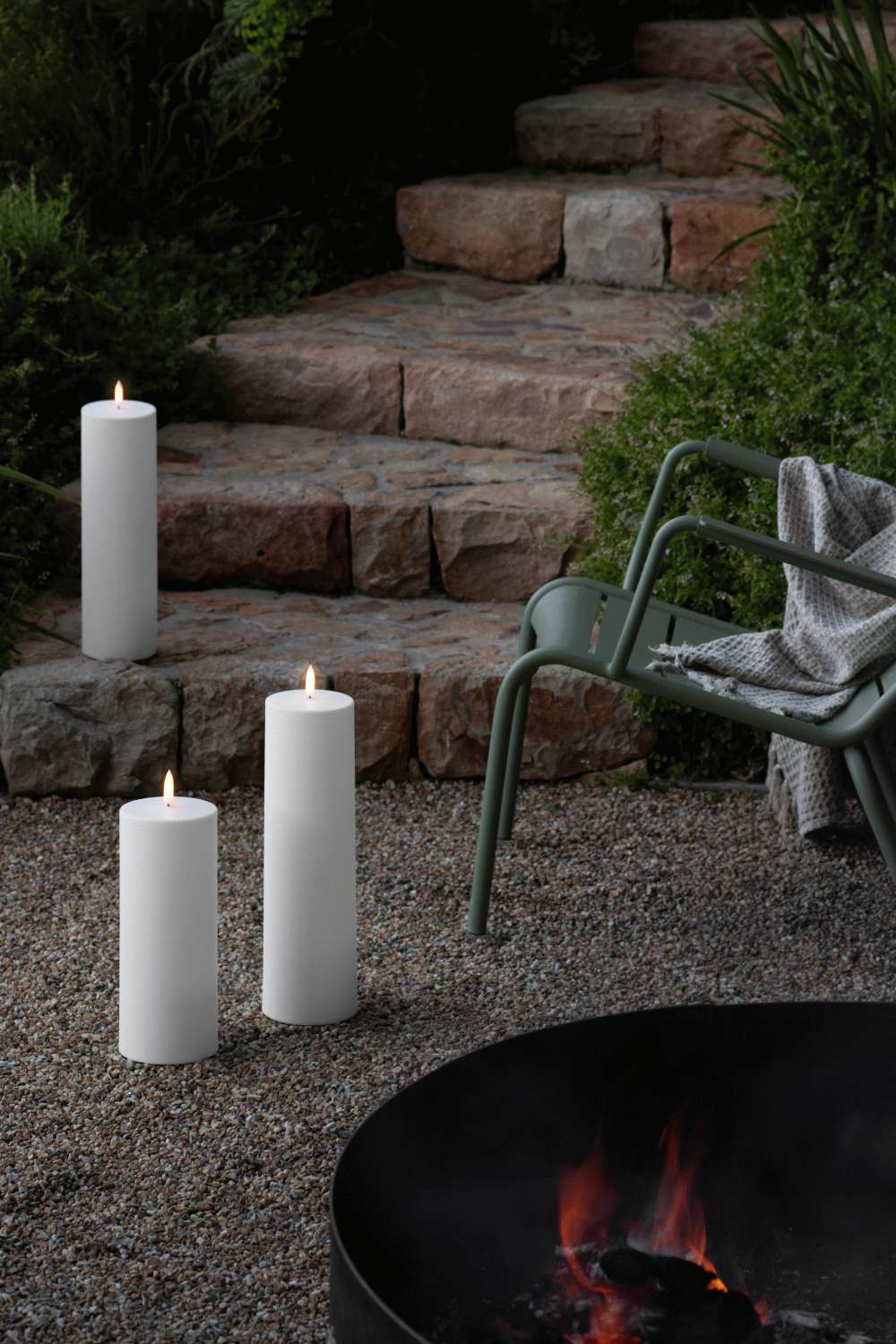 Uyuni Lighting Maxi Bloklys Udendørs LED i hvid plastik er designet til at skabe autentisk hygge og atmosfære i dine udendørsområder. Dette bloklys kombinerer den naturlige charme fra traditionelle stearinlys med moderne LED-teknologi og robust konstruktion, der gør det perfekt til brug i haven, på terrassen eller altanen.Med sine dimensioner på Ø12xH30 cm har dette bloklys en markant tilstedeværelse, der skaber en varm og indbydende stemning, uanset om du arrangerer en sommeraften med gæster eller blot ønsker at nyde en stille stund udendørs. Bloklyset er fremstillet i ABS-plast, et materiale kendt for sin styrke og modstandsdygtighed, hvilket sikrer lang levetid selv under skiftende vejrforhold.