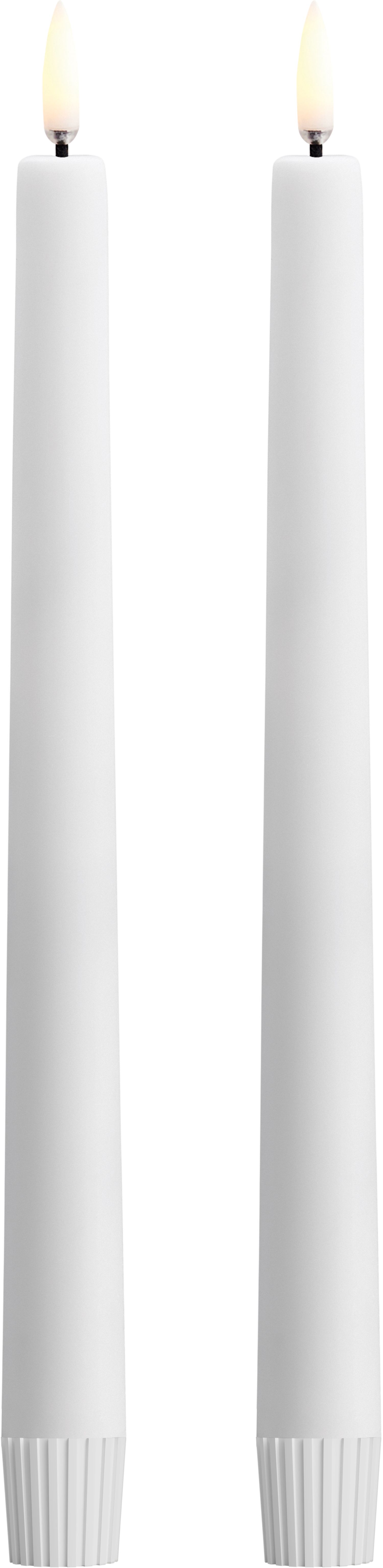 Den slanke form med en diameter på 2,3 cm og en højde på 25 cm gør kronelysene perfekte til lysestager, lantermer eller som fritstående dekoration. De klassiske dimensioner passer naturligt ind i enhver udendørs indretning og tilføjer en tidløs elegance til dit uderum.