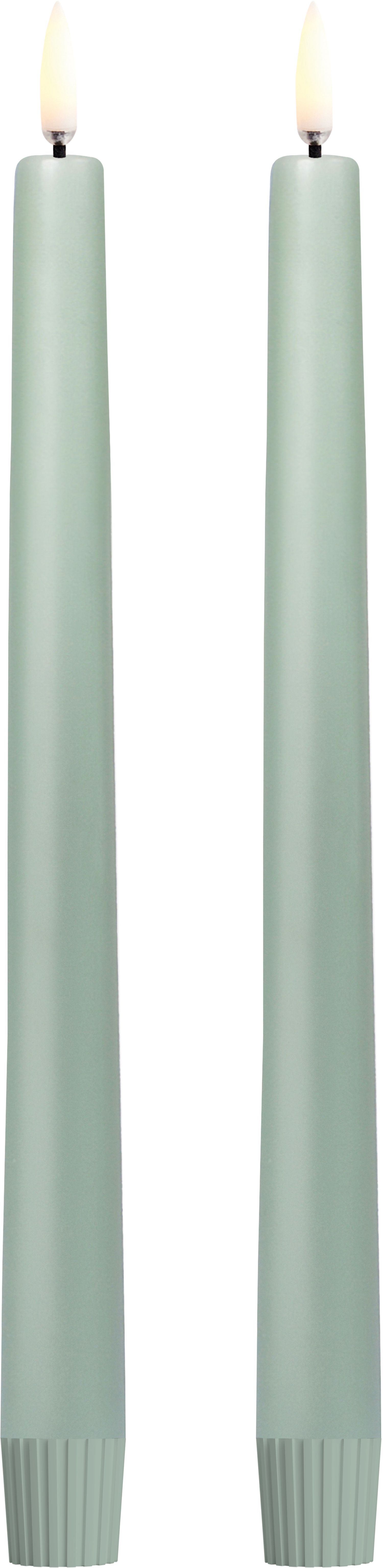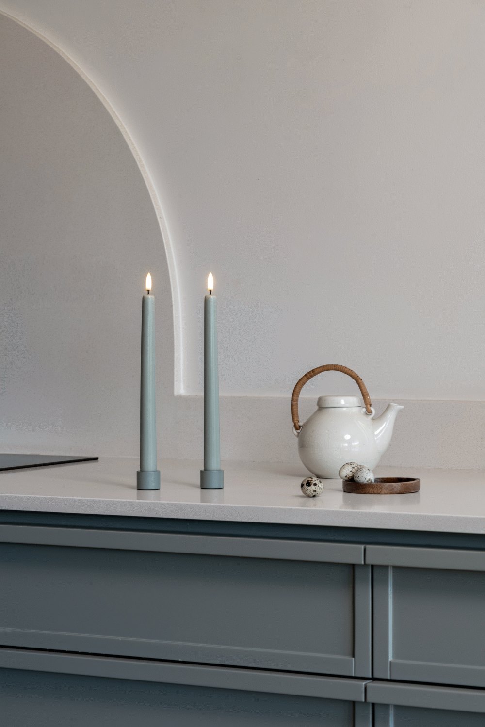 Uyuni Lighting kronelys i Dusty Green er en elegant løsning til at skabe stemningsfuld belysning i hjemmet. Med deres slanke design og naturlige udseende tilfører disse LED-lys en moderne fortolkning af det klassiske stearinlys, perfekt til både hverdagsbrug og festlige lejligheder.Hvert lys er fremstillet i ren paraffin, hvilket giver en autentisk overflade og udtryk, der minder om traditionelle stearinlys. Den diskrete Dusty Green farve passer smukt ind i både moderne og klassiske indretningsstile og kan kombineres med andre farver fra Uyuni Lightings sortiment for at skabe personlige arrangementer.
