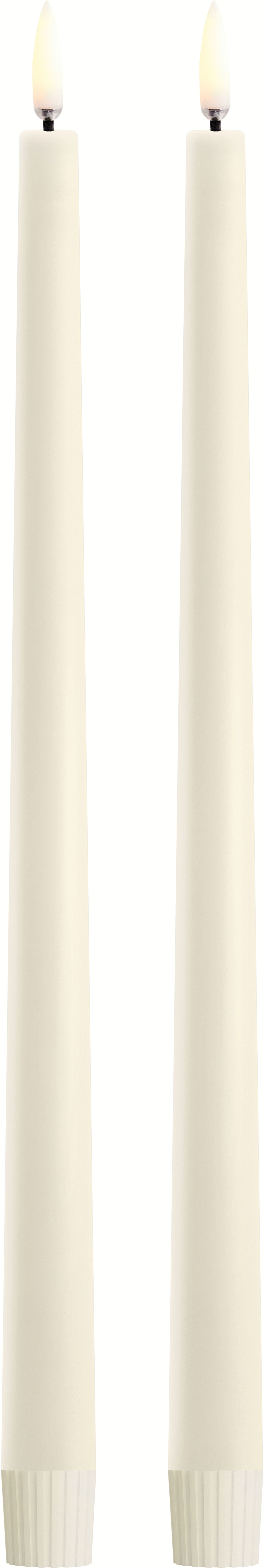 Uyuni Lighting kronelys i ivory skaber en autentisk og stemningsfuld belysning, der kombinerer traditionel æstetik med moderne LED-teknologi. Med deres slanke design og høje kvalitet passer disse lys perfekt til både festlige lejligheder og hverdagens hyggelige stunder.Disse elegante kronelys er fremstillet af ren paraffin, hvilket giver dem et naturligt og ægte udseende, der er næsten umuligt at skelne fra traditionelle stearinlys. Den cremehvide ivory-farve tilfører varme til enhver indretning og passer smukt sammen med både klassiske og moderne interiørstile. Med en højde på 32 cm og en diameter på 2,3 cm er de ideelle til lysestager, kandelabre og adventskranse.