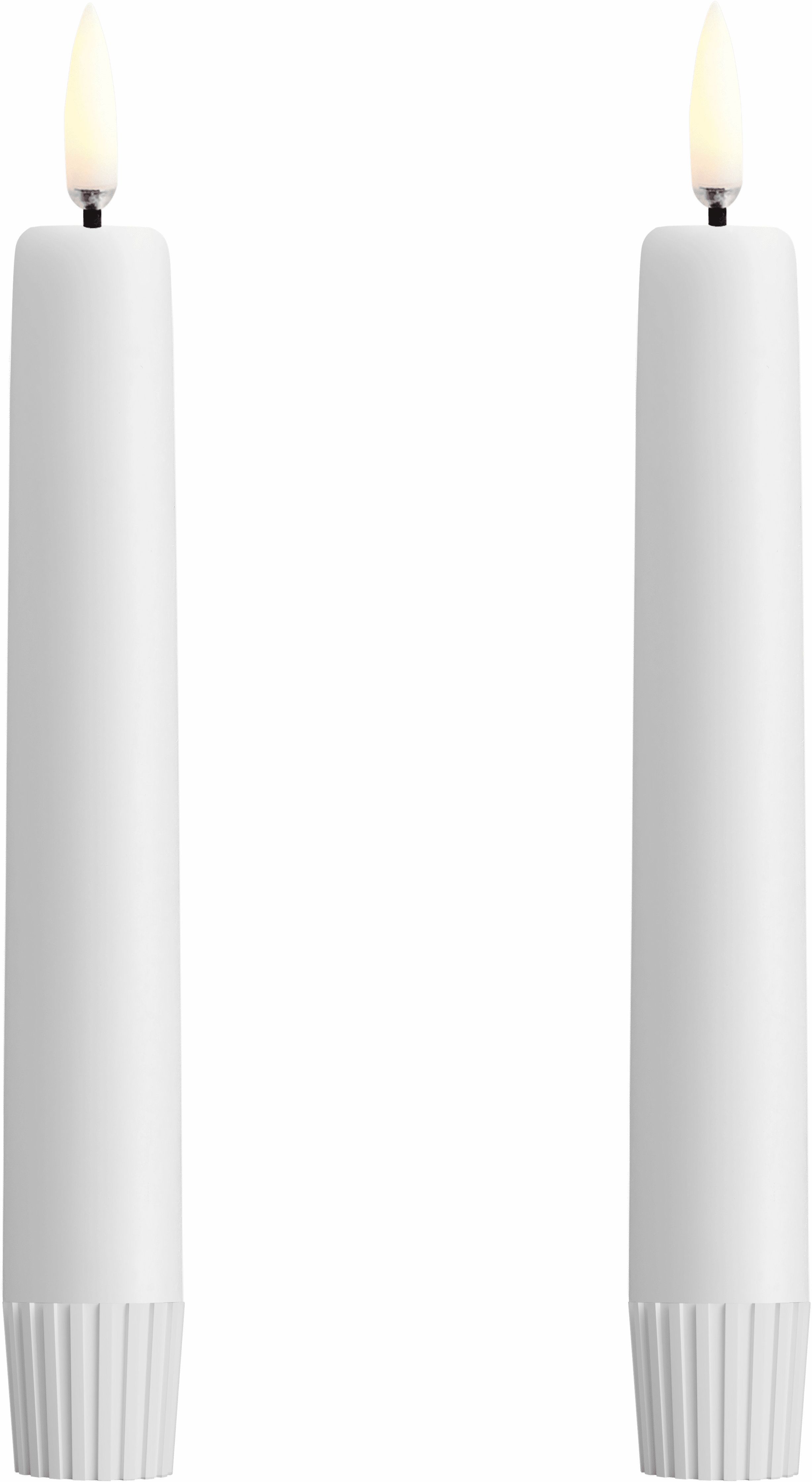 Uyuni Lighting kronelys i Nordic White bringer autentisk stemning til hjemmet med den perfekte kombination af klassisk design og moderne teknologi. Disse LED-kronelys er fremstillet i ren paraffin, hvilket giver dem et naturligt og realistisk udseende, der næsten er umuligt at skelne fra traditionelle stearinlys.Med en diameter på 2,3 cm og en højde på 16,4 cm passer disse kronelys perfekt i standardlysestager og skaber en varm, hyggelig atmosfære i ethvert rum. Den nordiske hvide farve gør dem ideelle til både daglig brug og festlige lejligheder, hvor de tilføjer et elegant touch til borddækningen eller vindueskarmen.