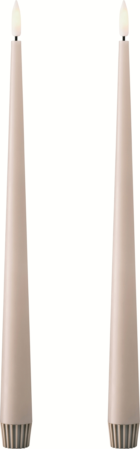 Disse elegante LED-stagelys fra ester & erik kombinerer traditionelt håndværk med moderne teknologi og skaber en autentisk lyskilde uden åben flamme. Med deres slanke proportioner og grå farvetone passer de perfekt ind i både klassiske og moderne indretninger, hvor de tilfører en rolig og stilfuld atmosfære.Hvert lys er fremstillet med en coating af ægte voks, hvilket giver dem et naturligt og autentisk udseende. Voksets naturlige egenskaber betyder, at hvert enkelt lys kan have sine egne unikke variationer i farvenuance og overfladestruktur – detaljer der opstår under produktionen og giver hvert lys sin helt egen karakter og charme. Denne naturlige variation understreger kvaliteten og det håndværksmæssige udtryk.
