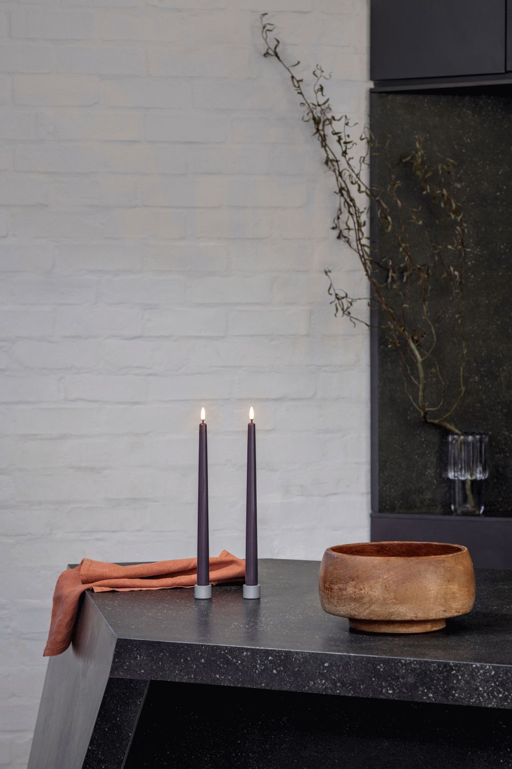 - 2-pak LED-kronelys i farven Dusty Mulberry