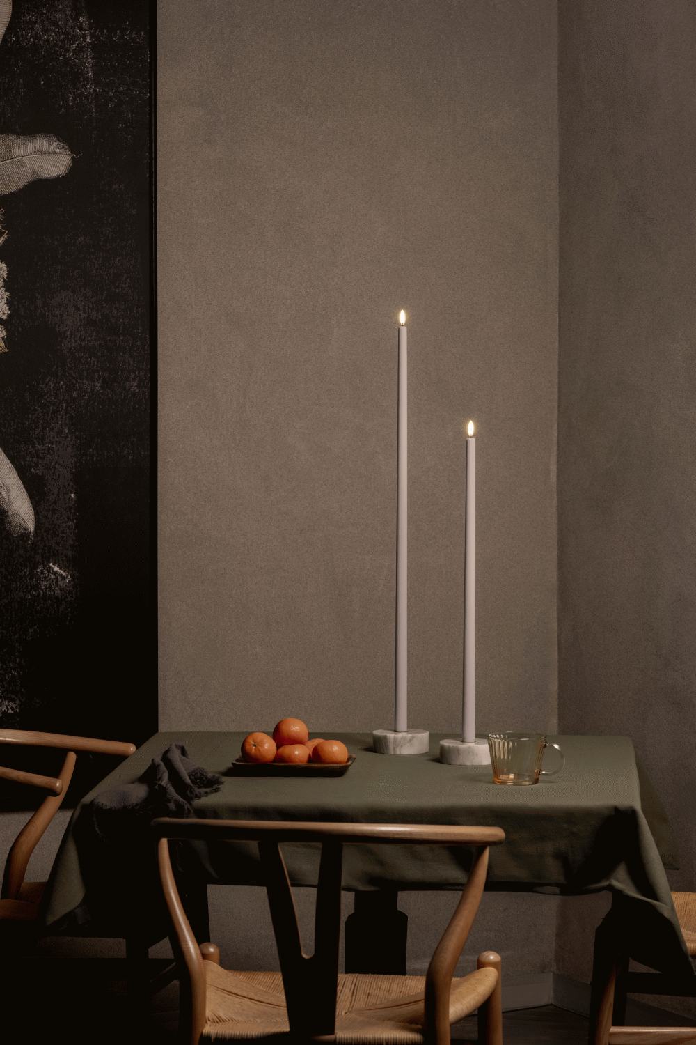 Dette elegante LED-kronelys fra Uyuni Lighting transformerer ethvert rum med sin imponerende højde på 75 cm og sofistikerede beige farvetone. Det høje, slanke design gør det til et perfekt statement-piece, der fanger opmærksomheden og skaber atmosfære i både moderne og klassiske interiører.Lyset er fremstillet af ægte paraffinvoks med en glat, klassisk finish, der udstråler tidløs elegans. Den beige nuance passer smukt ind i skandinaviske farveskemaer og komplementerer naturlige materialer som træ og sten. Med sin markante højde fungerer det fantastisk som solitær dekoration eller kan kombineres med andre størrelser fra Uyuni Lightings kollektion for at skabe dynamiske arrangementer.