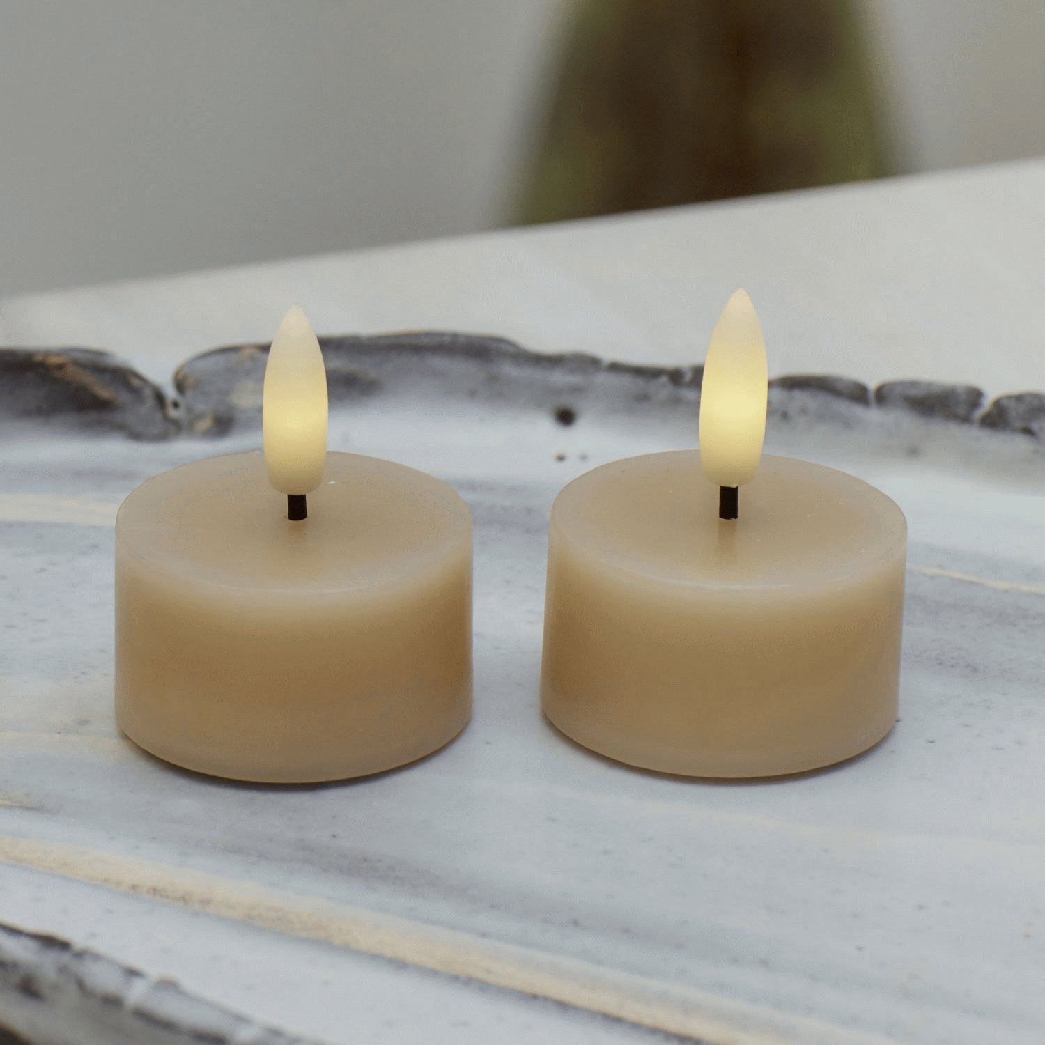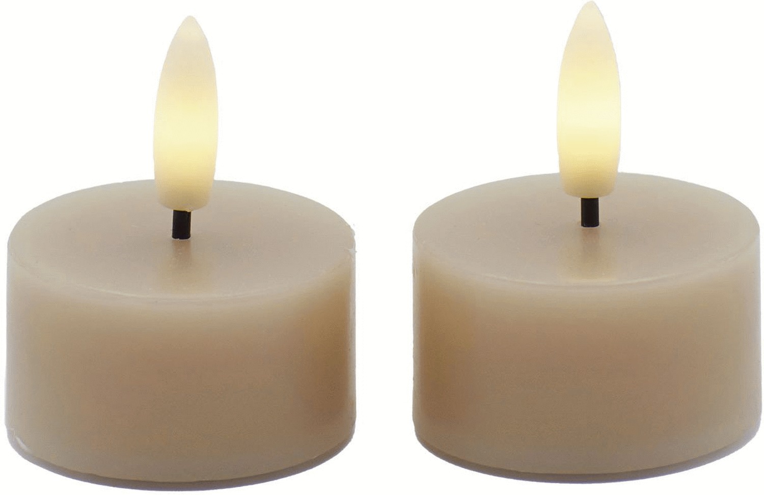 - Pakke med 2 elegante fyrfadslys i lys karamel