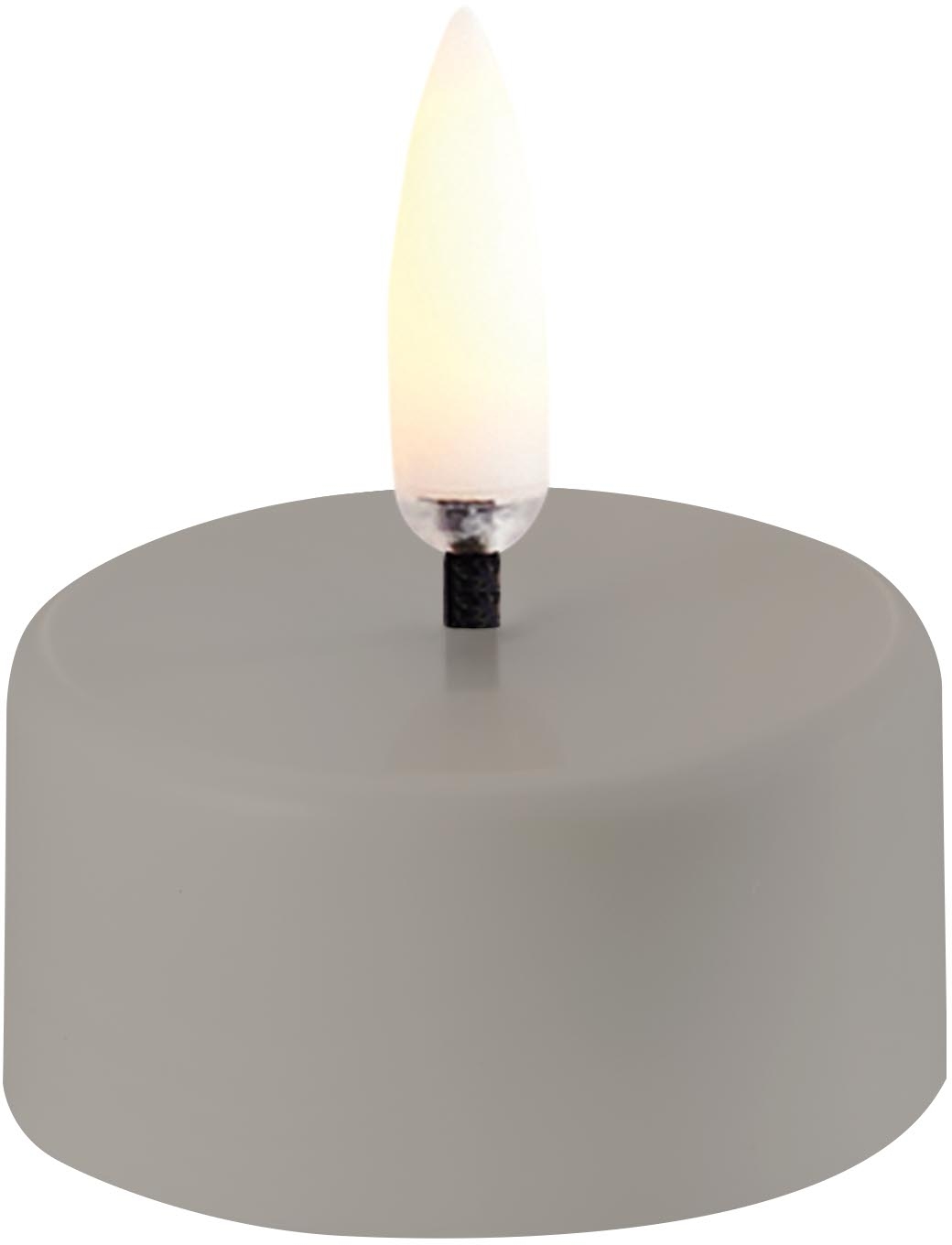 Uyuni Lighting har med deres Tealight 400 LED fyrfadslys skabt en perfekt kombination af stemningsfuld belysning og praktisk funktionalitet. Dette sandstone-farvede fyrfadslys i plastik er større end traditionelle fyrfadslys, hvilket giver dig frihed til at placere det i mere utraditionelle sammenhænge og skabe unikke dekorative udtryk i dit hjem.Det voksdyppede design tilfører en autentisk følelse, mens den innovative LED-teknologi sikrer en imponerende batterilevetid på hele 400 timer fra et enkelt CR2477 batteri, som medfølger ved køb. Den patentanmeldte 3D-flammeeffekt gengiver på forbløffende vis det naturlige flakkende lys fra et ægte stearinlys, men uden risikoen ved åben ild.