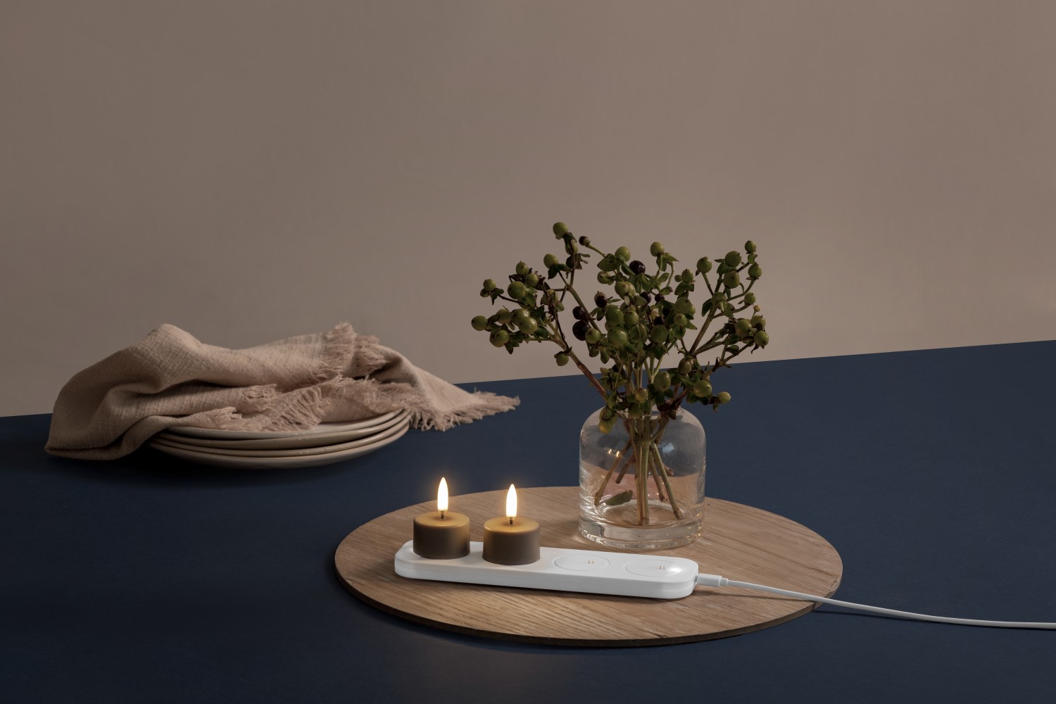 Fyrfadslyset kan betjenes på flere måder - tænd og sluk manuelt efter behov, eller udnyt de avancerede funktioner via den separate Uyuni-fjernbetjening. Med fjernbetjeningen kan du indstille timerfunktioner på 4, 6, 8 eller 10 timer og justere lysstyrken med tre forskellige dæmpningsniveauer.