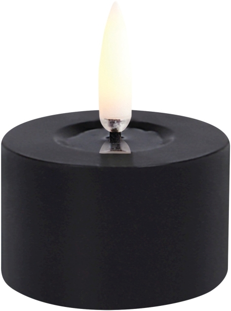 Uyuni Lighting's fyrfadslys med smelteeffekt bringer en autentisk stearinlysoplevelse til dit hjem uden bekymringer om åben ild. Dette Pain Black LED-fyrfadslys på Ø5xH2,8 cm er designet med en innovativ smeltebassin-effekt, der skaber illusionen af et stearinlys, der allerede har brændt et stykke tid – en detalje der øger den hyggelige stemning i ethvert rum.Dette fyrfadslys repræsenterer den perfekte balance mellem traditionel æstetik og moderne teknologi. Den banebrydende 3D-flamme, som er den første af sin slags på markedet, giver en forbedret flammereflektion der skaber en autentisk og varm atmosfære. Den mørke Pain Black farve giver et elegant og sofistikeret udtryk, der passer perfekt ind i både moderne og klassiske indretningsstile.
