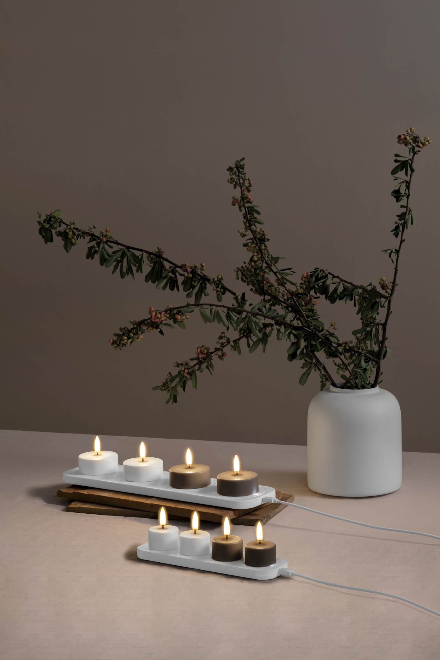 - Genopladeligt LED-fyrfadslys i elegant Sandstone Plain farve