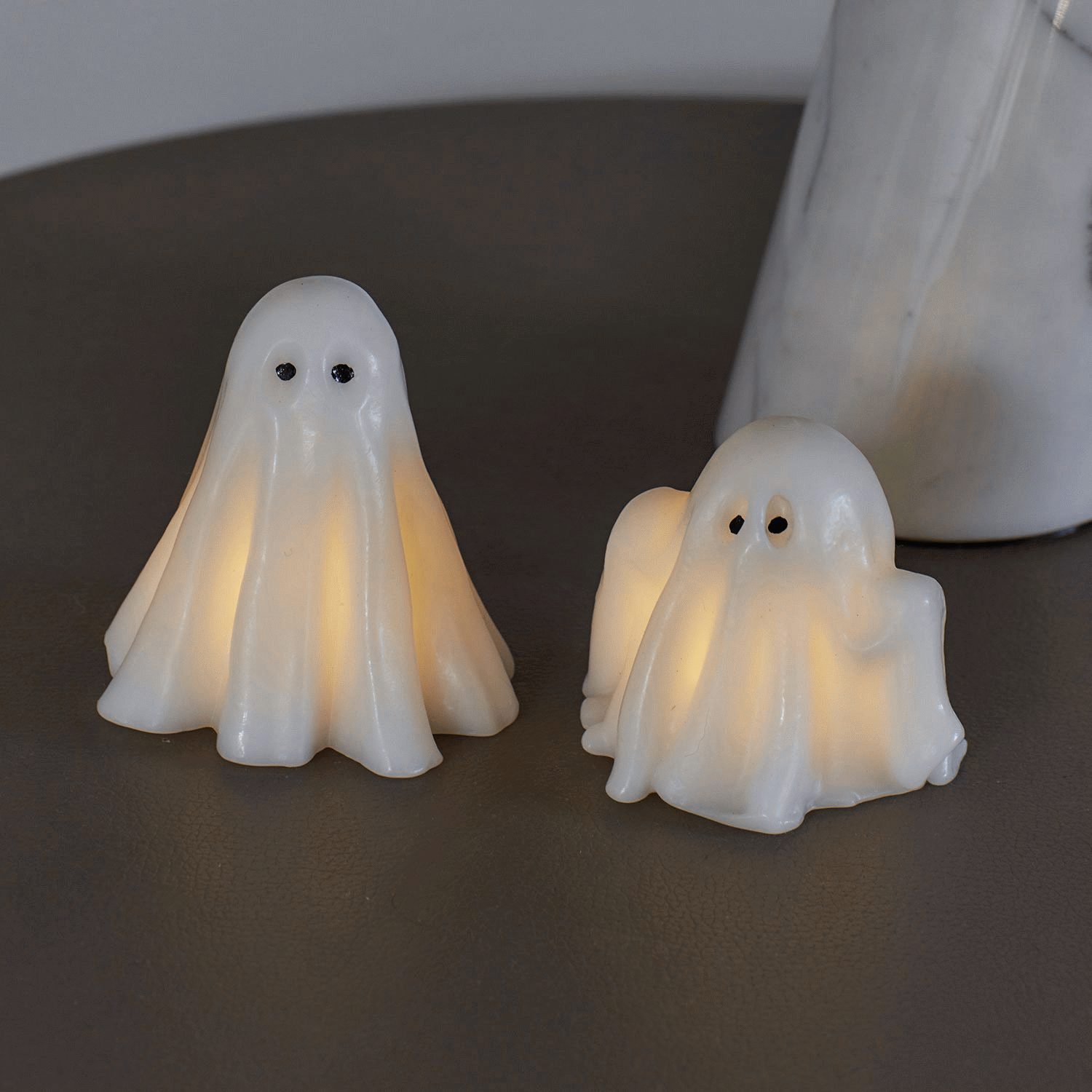 Hver spøgelsesfigur er fremstillet i voks og udstyret med et indbygget LED-lys, som giver et blødt, varmhvidt skær. Dette lys skaber en inderlig og hyggelig stemning uden at være for intenst eller overdrevet dramatisk. De afdæmpede former og den hvide overflade gør figurerne til et elegant supplement til efterårets indretning, hvor de kan stå alene eller sammen med andre dekorative elementer.