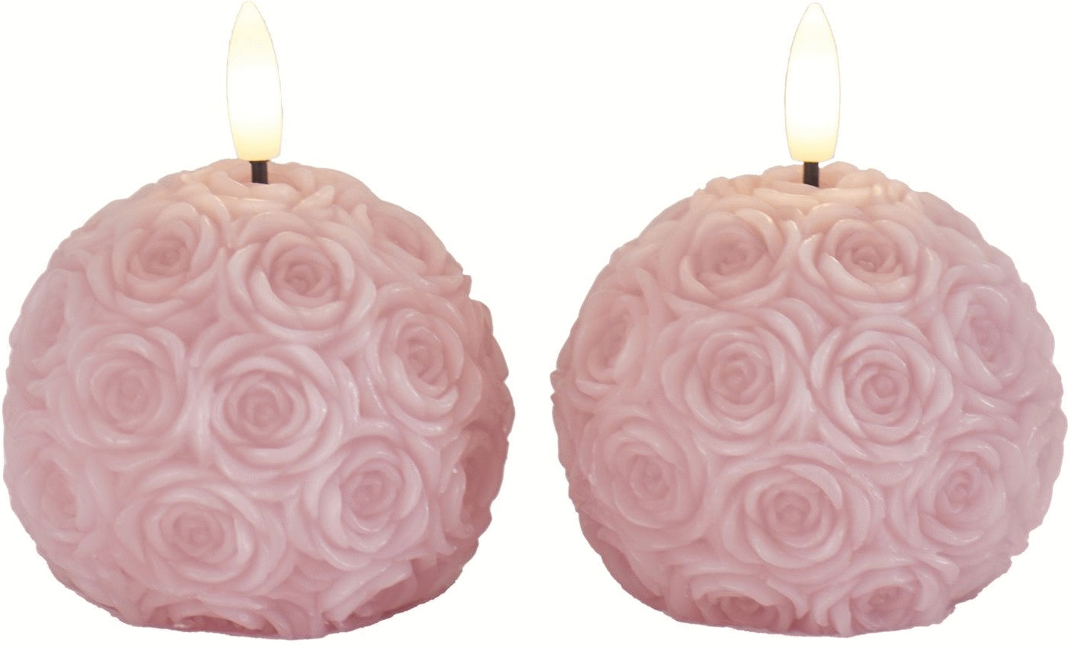 Rosalina kuglelyset fra Sirius bringer en romantisk atmosfære ind i hjemmet med sit elegante design og detaljerede rosenmønstre, der pryder hele overfladen. Den bløde, rosa nuance skaber en harmonisk og indbydende stemning, der passer naturligt ind i både moderne og klassiske interiører. Med sin kompakte størrelse finder lyset sin plads på badeværelset, natbordet eller som en del af en hyggelig dekoration i stuen.Lyset er fremstillet i voks, hvilket giver en autentisk overflade og et ægte stearinlys-udtryk. Den varme LED-flamme efterligner et levende lys med en naturtro bevægelse, der skaber en blød og indbydende belysning. Samtidig eliminerer LED-teknologien alle bekymringer om åben ild, varmeudvikling eller sodaflejringer, hvilket gør lyset sikkert at bruge overalt i hjemmet – også i rum, hvor ægte lys normalt ville være upraktiske.